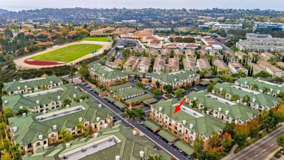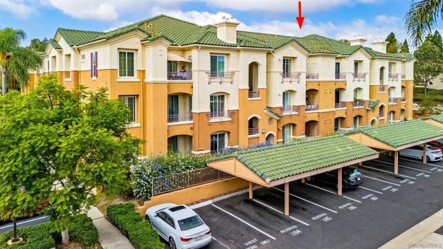 Welcome to your serene, top-floor retreat in the heart of Carmel Valley! A rare find for the community, this home comes with two dedicated parking spaces. This stunning 1 bed, 1 bath condo captivates with dramatic vaulted ceilings and a light-filled, open-concept floor plan. The spacious living area and large bedroom both provide access to a private balcony, which conveniently houses your in-unit laundry. As a resident, you'll enjoy resort-style amenities including a sparkling pool, hot tub, and a fitness center. Your new home is ideally located near the best shopping and restaurants in the area. Enjoy effortless travel with quick access to the I-5 and SR-56 freeways; all of San Diego is within your reach. Don't miss this perfect blend of comfort and convenience!