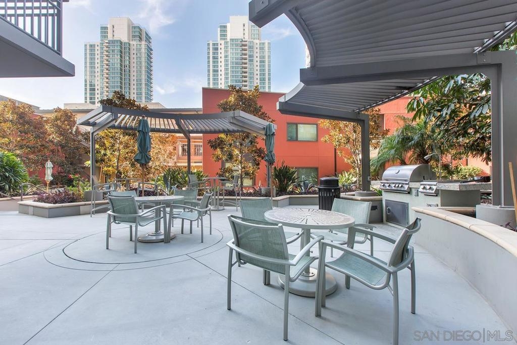 RARE OFFERING - Over 600 SF PRIVATE DECK with Iconic City Views. An extraordinary opportunity to own a condo with an expansive 600 plus square foot private deck - large enough to comfortably entertain 20 guests and nearly doubling your living space. This exceptional outdoor retreat offers sweeping city views, beautiful sunlight throughout the day, and ample room to create a custom outdoor oasis, including the potential for raised herb or garden planters. Ideally situated on iconic India Street in the heart of the Columbia District, this home provides effortless access to the Coaster and train station, along with vibrant dining, waterfront paths, and city conveniences just moments away. Including the new Whole Foods which will be open in the Spring. Inside, the residence is light, bright, and thoughtfully designed with an excellent floor plan tailored for entertaining. Highlights include hardwood floors, a stacked-stoned fireplace, and an open concept kitchen that flows seamlessly into the living area. A full size washer and dryer add everyday convenience. The Treo building is known for its low HOA fees while still offering an impressive suite of amenities: 24-hour security, underground private parking, a resort-style pool and jacuzzi, a fully equipped gym, and dedicated bike and storage options - perfect for an active, urban lifestyle. Homes with this level of private outdoor space, location and amenities rarely come to the market. This is truly a one of a kind offering.