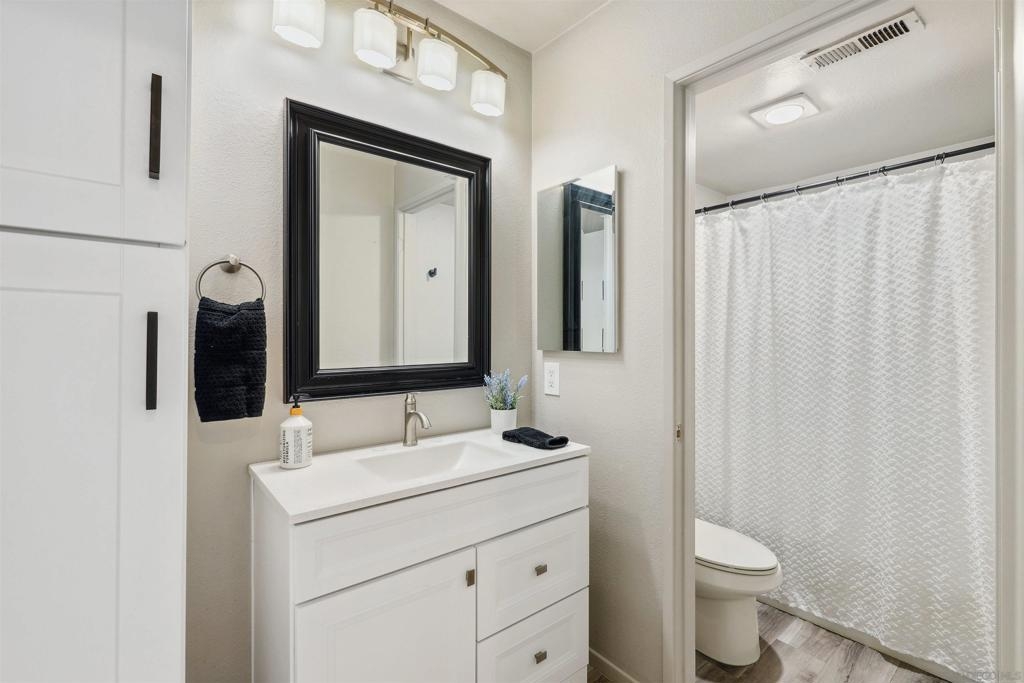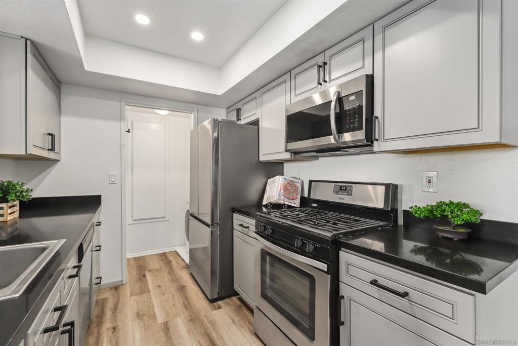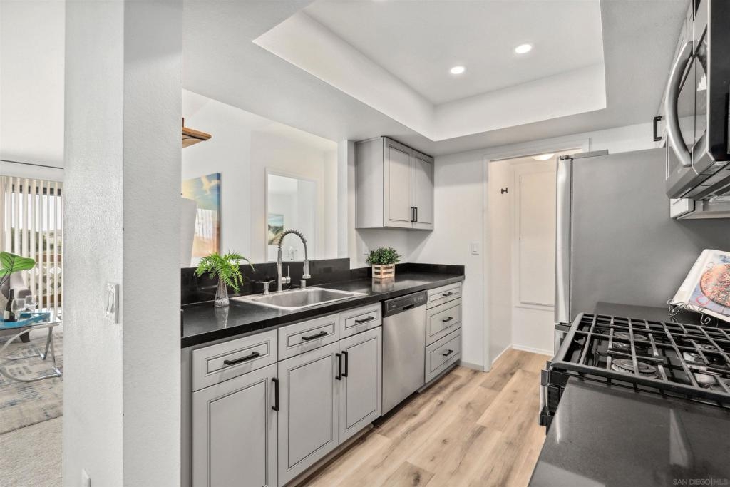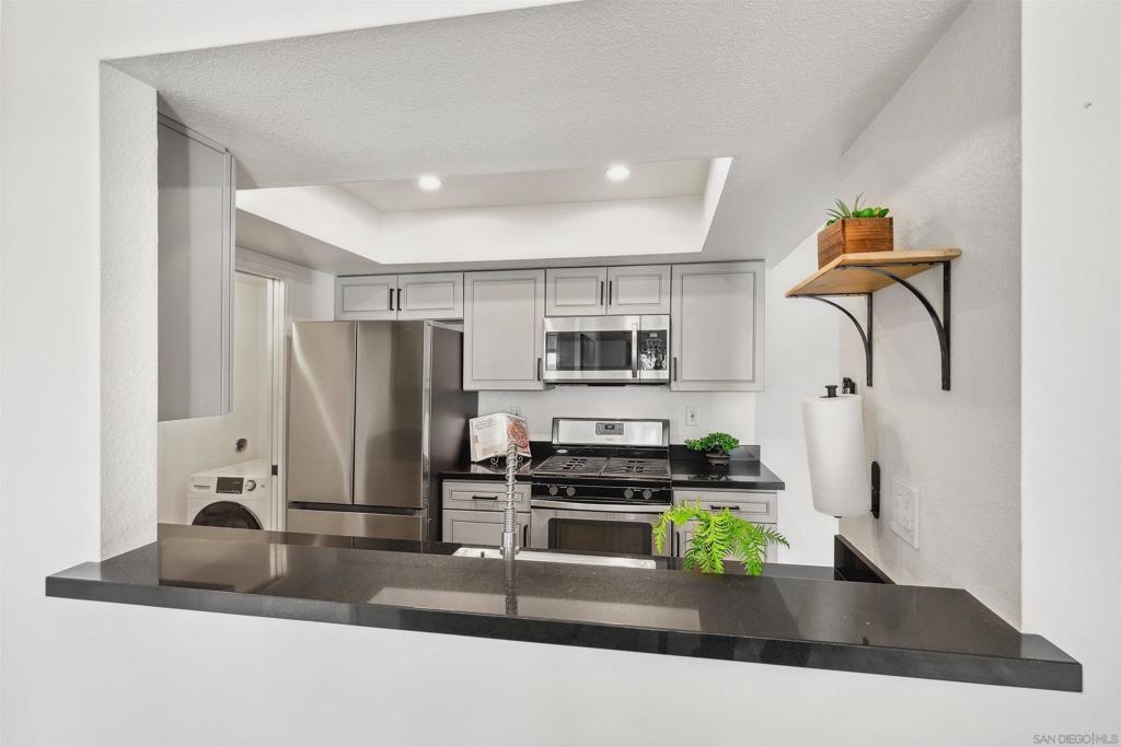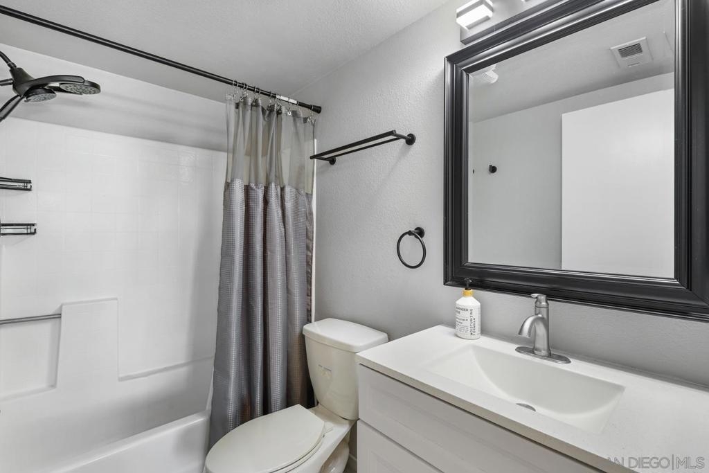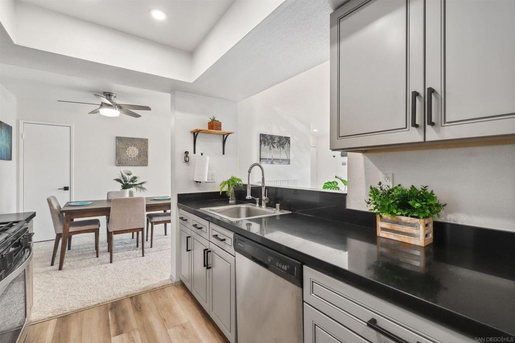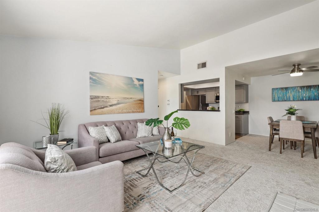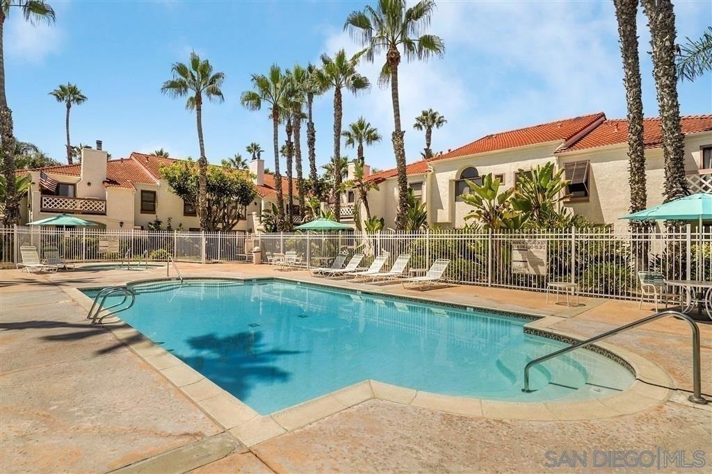 Welcome home to this stunning condo in the tropical, resort-style community of Casablanca in Penasquitos! This beautifully upgraded unit boasts luxury vinyl plank flooring, fresh new carpet, ceiling fans, and recessed lighting throughout. The designer kitchen is a chef's dream, featuring newer cabinetry, granite countertops, and sleek stainless steel appliances. Cozy up in the living room with a charming fireplace, perfect for relaxing evenings. The spacious primary suite offers a walk-in closet and a private en-suite bathroom with a modern white vanity. Just down the hall, the secondary bedroom is equally inviting, with easy access to a hall bathroom, also updated with a newer white vanity. Step outside to your own private covered patio, ideal for both entertaining and unwinding. Additional perks include ample storage space, as well as a washer/dryer combo, and two assigned parking spots. Residents of Casablanca enjoy exclusive access to four pools, four spas, a clubhouse, and BBQ facilities. The location is unbeatable, with shopping, dining, and recreational options nearby, including the Penasquitos Reserve, YMCA, and library. Plus, you're just minutes from the beautiful Del Mar and La Jolla beaches, all within the highly regarded Poway Unified School District!