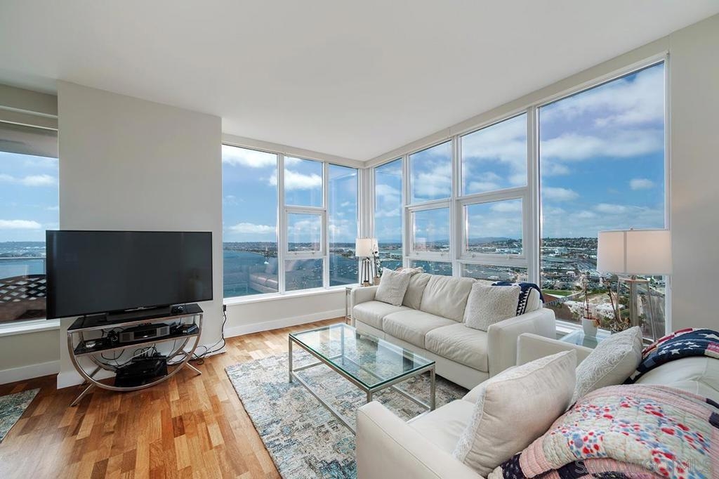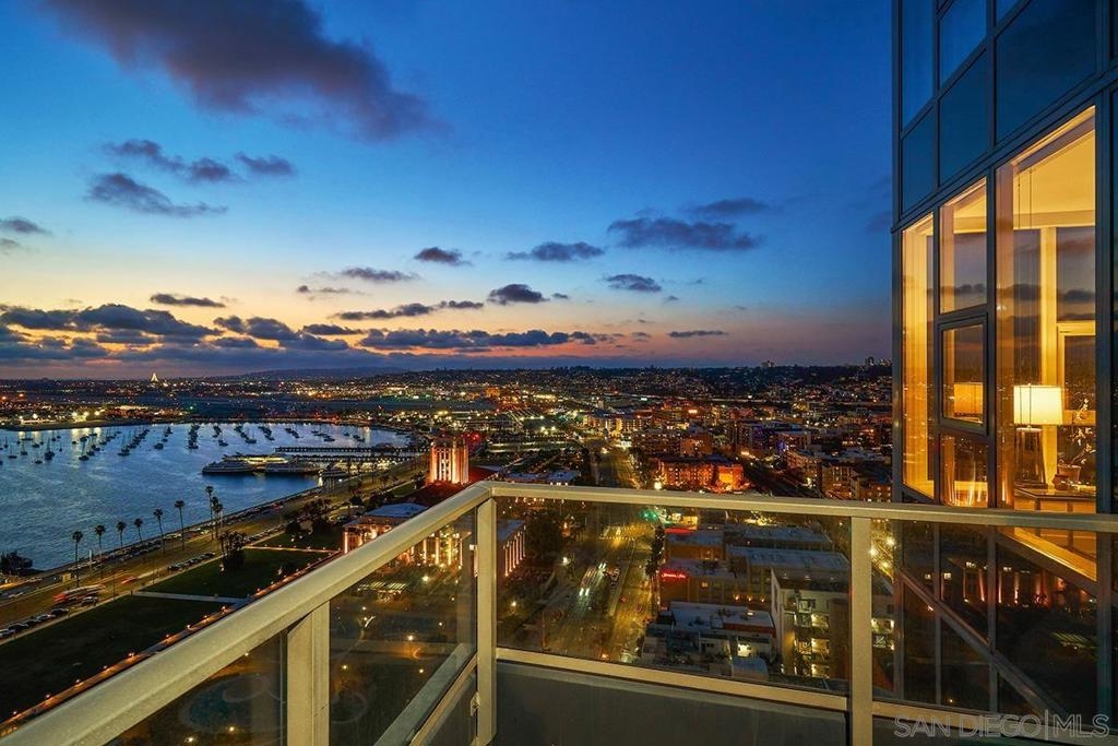 It’s all about the panoramic bay and ocean views- this coveted northwest corner residence at Bayside is the one you’ve been waiting for! Watch the ships come in and out of the harbor and the twinkling airport lights from either of your TWO balconies. Revel in the gourmet designer kitchen, rich wood floors, brilliant pendant and recessed lighting, stone tile in the baths, and a large flex space perfect for that important home office or den. With 2 prime side-by-side parking spaces and ample storage, luxurious urban living has never been this convenient! Bayside has set the standard for high-end Downtown living with many upgrades made standard in all of the residences. The expansive kitchen is well-appointed with beautiful CaesarStone counters, luxurious Snaidero cabinetry, top-of-the-line Viking appliances including a built-in wine chiller, generous storage, and contemporary design elements. The primary bedroom retreat offers its own northwest-facing private balcony, walk-in closet with custom organizers, and a beautiful en-suite bath with stone surrounds. As one of San Diego's most exclusive addresses, Bayside, has many wonderful features and some of the best amenities for luxury living. The development offers 24-hour service, an expansive swimming pool and spa, sauna, steam room, movie theatre room, a conference room, & wine lounge including an oversized wine-chiller for parties. There are also BBQ & picnic areas, a library, pool table & much more! All this and a prime locale across from new parks & waterfront beautification!