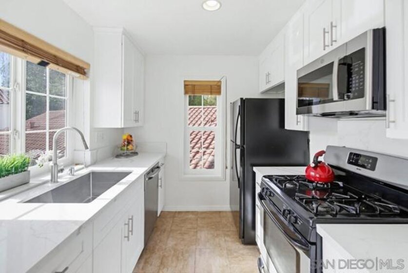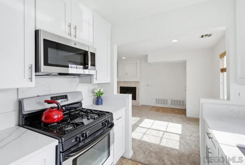 Location, Location, Location! Move-in ready, upgraded 2-bedroom, 2-bath upper corner unit offering canyon views, abundant natural light, and an exceptional location near the pool. This bright, open floor plan features brand-new quartz countertops and kitchen cabinetry, new carpet, fresh interior paint, and new bathroom sinks. Additional highlights include dual-pane windows, custom lighting in the living areas, and a spacious private patio ideal for outdoor enjoyment. The spacious primary bedroom offers ample closet space and a dual-sink en-suite bathroom, overlooking the community greenbelt in a quiet, peaceful setting. The guest bedroom, kitchen, and living room all enjoy spectacular canyon views. Ideally located near the pool, gym, and recreation room. The Sun Ridge Vista community features three pools, multiple spas, and a fitness center, with convenient access to I-56 and I-15 freeways. Located within the highly desirable Poway Unified School District. Location, Location, Location! Move-in ready, upgraded 2-bedroom, 2-bath upper corner unit offering canyon views, abundant natural light, and an exceptional location near the pool. This bright, open floor plan features brand-new quartz countertops and kitchen cabinetry, new carpet, fresh interior paint, and new bathroom sinks. Additional highlights include dual-pane windows, custom lighting in the living areas, and a spacious private patio ideal for outdoor enjoyment. The spacious primary bedroom offers ample closet space and a dual-sink en-suite bathroom, overlooking the community greenbelt in a quiet, peaceful setting. The guest bedroom, kitchen, and living room all enjoy spectacular canyon views. Ideally located near the pool, gym, and recreation room. The Sun Ridge Vista community features three pools, multiple spas, and a fitness center, with convenient access to I-56 and I-15 freeways. Located within the highly desirable Poway Unified School District.
