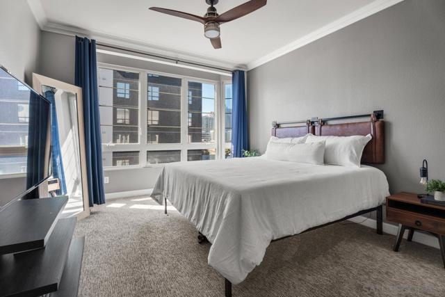 GREAT OPPORTUNITY to own the ** lowest priced 3 bedroom in 92101/92103/92104/92116 ** Welcome to Union Square, where urban convenience meets contemporary comfort. This 5th-floor corner condo is flooded with natural light through expansive windows and features soaring 9-foot ceilings that create an airy, open feel. A true rarity downtown, this is a full **3-bedroom residence—not a 2-plus-den/loft—**with generously sized rooms, an open-concept layout, and ample storage throughout. The primary suite offers a spa-like ensuite bath and a large walk-in closet with built-ins. Both bathrooms feature shower/tub combos, granite vanities, and updated modern lighting. Additional highlights include central AC and heating, two oversized parking spaces with a storage cage above, and a seamless flow between the living, dining, and kitchen spaces—perfect for everyday living or entertaining. Step outside your door and enjoy all that Downtown San Diego has to offer. You’re just steps from San Diego City College, a short walk to Petco Park, and positioned near the highly anticipated East Village Green (Phase 1 opening in 2025). Union Square residents enjoy resort-style amenities, including a fully equipped fitness center with sauna and jacuzzi, BBQ areas, a community lounge and party room, EV charging stations, and a year-round calendar of social events hosted by an active community committee. Onsite management ensures peace of mind, while the vibrant East Village location keeps the best of downtown dining, culture, and entertainment within easy reach.