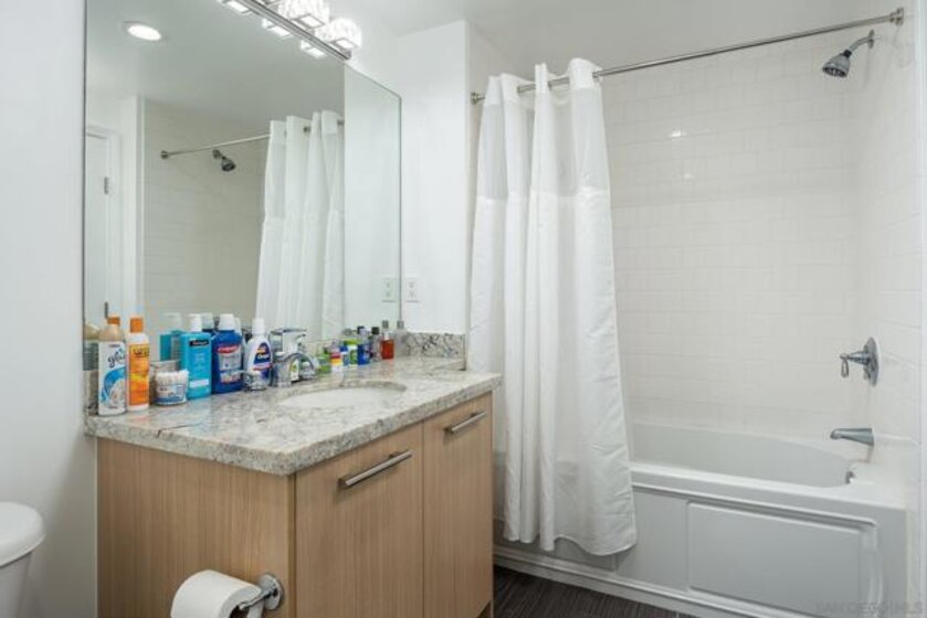 Don't miss this turn-key opportunity! The best location in Little Italy goes a step further. This property provides seamless access to the award-winning courtyard, pool, spa, and downtown amenities without ever having to enter the main building. Enjoy your own Lanai overlooking the tropical waterfalls. Completely upgraded! Too much to list. Hard surface flooring, LED lighting, ceiling fans, extra outlets, wardrobe organizer and doors, blackout blinds, upgraded kitchen appliances, European style cabinets, full backsplash, LG W/D, and arguably best parking in building. SEE THE VIRTUAL TOUR! Location Location Location....Being set between Little Italy; and the Waterfront provides the ultimate walk-ability score. Breeza possesses a true community feel and "casual elegance" Spectacular views occur throughout the building without having to be positioned high in the tower. Proud winner of landscape awards; Breeza features resort like amenities including roof top terrace with stunning views, heated pool and spa, community room, exercise room, common area wi-fi, business center and on-site professional management. *Room Measurements to be confirmed by Buyer.