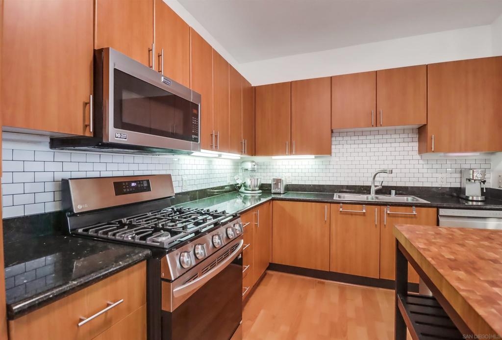 Welcome home to this stylish and comfortable 2-bedroom, 2-bath condo with 1,013 sq ft of open living space. This bright and inviting home features a kitchen with all the right upgrades - stainless steel appliances, granite counters, and a clean subway tile backsplash. The kitchen flows directly into the living and dining areas, making it perfect for entertaining or everyday living. Enjoy peaceful mornings and relaxing evenings on your quiet, courtyard-facing balcony. The unit includes two tandem parking spaces with convenient storage on the back wall, ideal for seasonal gear, or extra belongings. Residents enjoy access to resort-style amenities including a sleek resident lounge with TV and pool table, a newly updated fitness center complete with spa and sauna, EV charging stations, and multiple BBQ areas throughout the community. Within walking distance to Balboa Park, the historic Gaslamp Quarter, restaurants, coffee shops, bars, Petco Park, and everything Downtown has to offer. Experience downtown living at its best, close to everything, yet tucked away in a tranquil, amenity-rich setting.