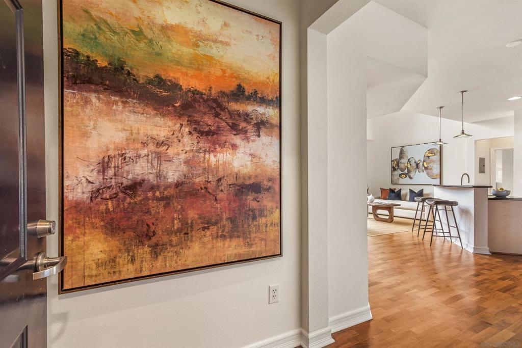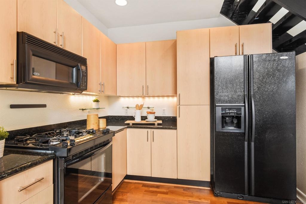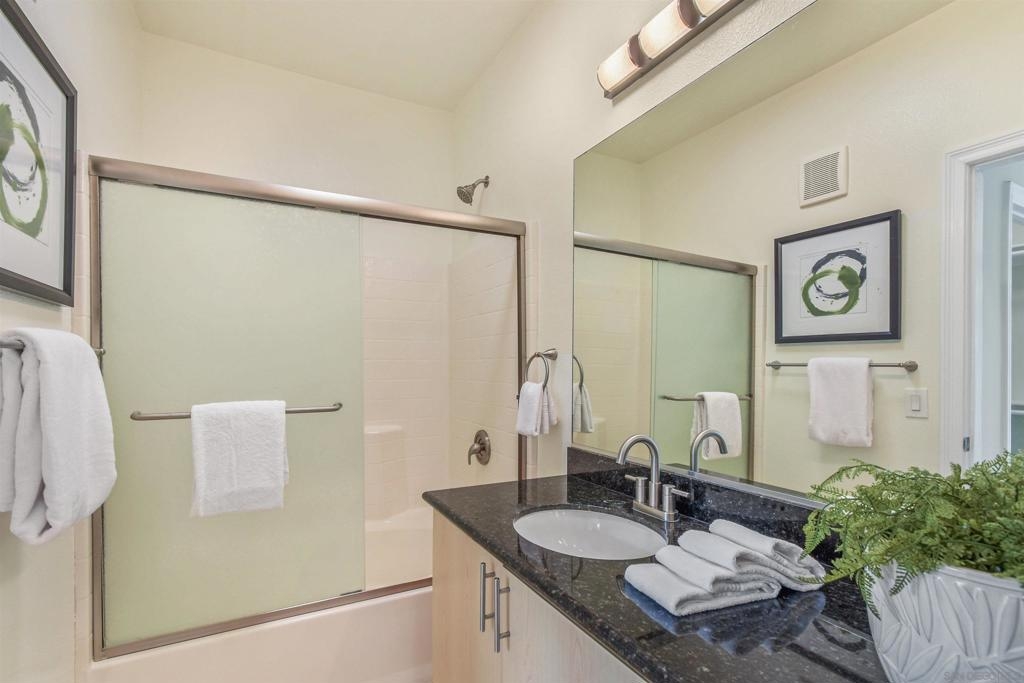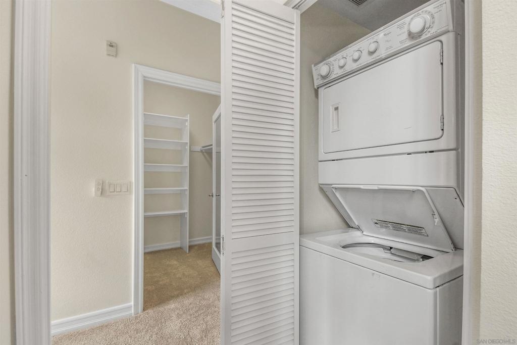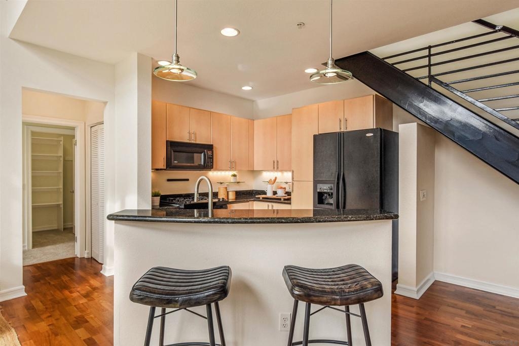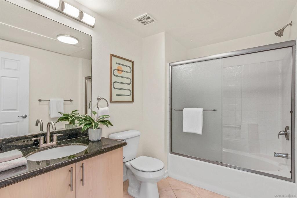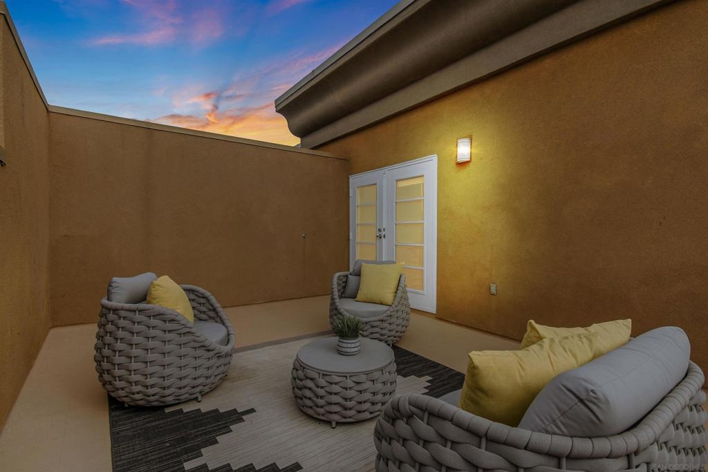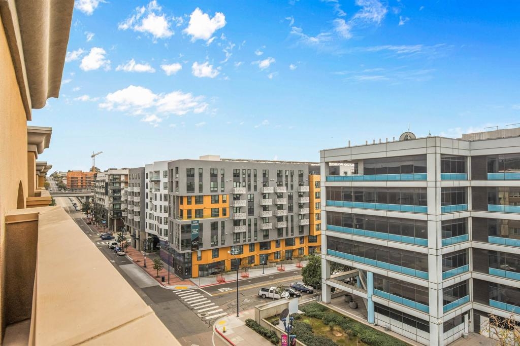 Rarely available, and tucked away near the end of the hallway on the Top Floor, is this 2 Bedroom, 2 Bath, PLUS LOFT, and a SPACIOUS ROOFTOP PATIO unit in Union Square!! Southern exposure, soaring 2 story ceilings in the main living area, and a wall of windows provide abundant natural light! An open and spacious floorplan lives even larger than its generous square footage would imply. The primary, with en suite bathroom, and guest bedrooms are sited on either side of the picture-perfect main living room. Entertain on game day or seek respite with "loft-y" expectations afforded by the indoor/outdoor flow from the 2nd story loft to the private use, terrace-like, roof-top patio. The loft functions equally well as an office|den|media|yoga|fitness|guest space, similar to how many people utilize a 3rd optional bedroom. Union Square is located right across the street from the San Diego PD HQ and less than a block from City College campus. Take in a Padres game, explore Makers Quarter, or find your favorite eatery or shop - experience the vibrancy and walkability afforded in the community of East Village! Modern ceiling fans, clean & sleek eat-in kitchen with an island, in-unit stacked laundry and 2 side by side parking spaces with 2 plexiglass enclosed storage cages above. You can have it all! Amenity-rich Union Square includes a well-equipped fitness gym, spa, sauna, bike storage cages, and an entertainer's sized community room with a pool table and a full kitchen for larger gatherings. The 2 side by side parking spaces are conveniently located near the closest elevator to your top floor unit! Top floor 2 bedroom + Loft units rarely come on the market in Union Square, and there have only been 2 other sales within the past 2 years!!