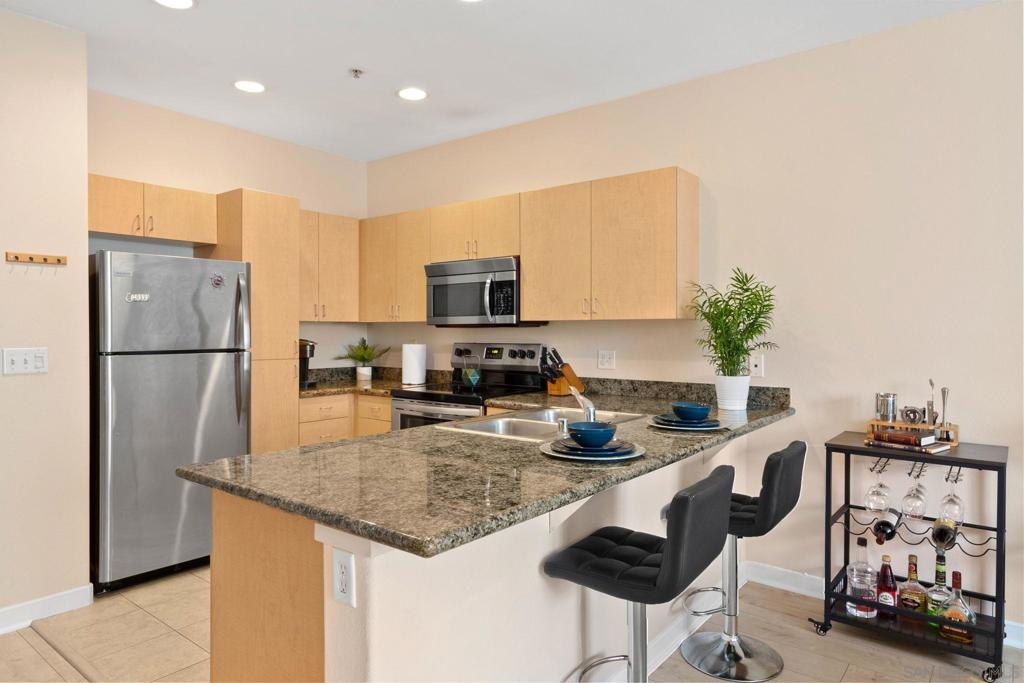 Located near the the charming Little Italy neighborhood, just a short walk away from Waterfront Park, Palermo condos can easily become home. Palmero condos offers numerous amenities, including a fully-equipped fitness center, pool, spa, clubhouse, guest parking, and a BBQ area. This 781 square ft unit offers an open kitchen with slab granite countertops, breakfast bar, stainless appliances, recessed lighting, stackable washer/dryer, and a convenient secured parking spot. Great opportunity for first time home buyer. VA/FHA approved