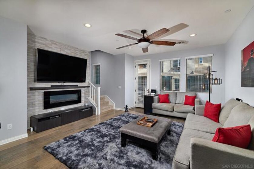 Fresh Pricing! Welcome to this beautifully upgraded 4-bedroom, 3.5-bathroom home nestled in the sought-after gated community of 4S Ranch, this home offers the perfect blend of comfort, style, and convenience. Step into the designer gourmet kitchen featuring stainless steel appliances, a custom built-in microwave, and elegant high end finishes throughout, custom floating shelves and backsplashes. The spacious open-concept layout includes a bright living area with a modern fireplace set on a custom stacked stone finished backdrop. Fresh new paint, new carpet and custom engineered woodplank floors throughout, multiple balconies provide multiple intimate sitting areas, Three full bathrooms including a private ensuite guest bedroom and an additional powder room creates an ideal floorplan for families or guests, additionally featuring a convenient interior laundry room. Enjoy the security of a 2-car attached garage and the benefits of a newer, well-maintained complex that includes access to a gorgeous community pool. This is a rare opportunity to own a larger townhome in one of San Diego’s most desirable school districts, just blocks from Del Norte High School. Don't Miss This One! Interior laundry, 2 car garage, located near parking, gorgeous community pool.