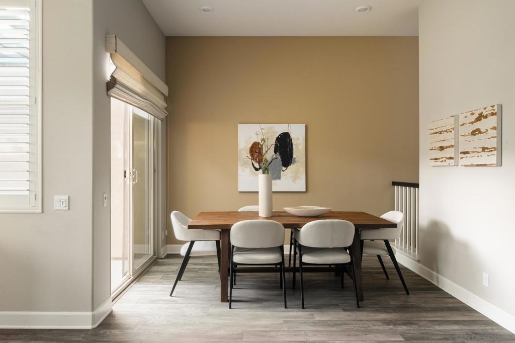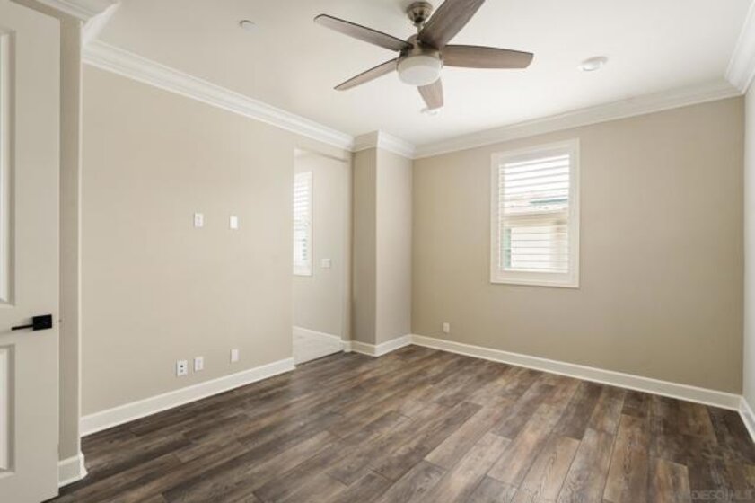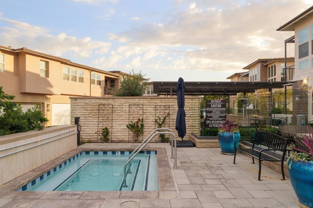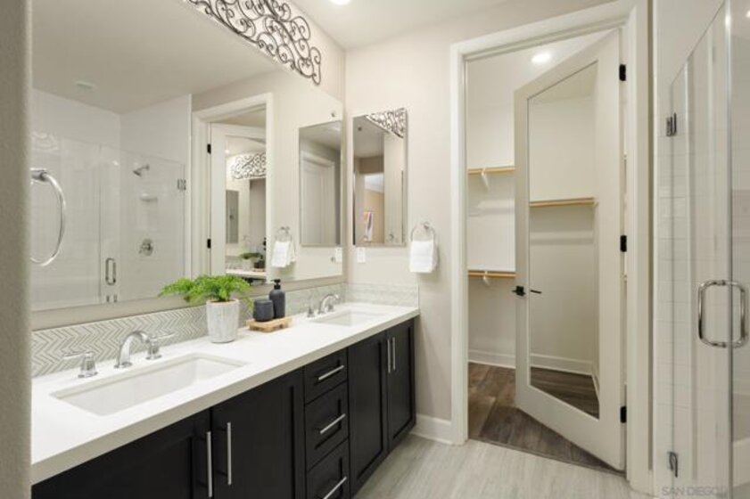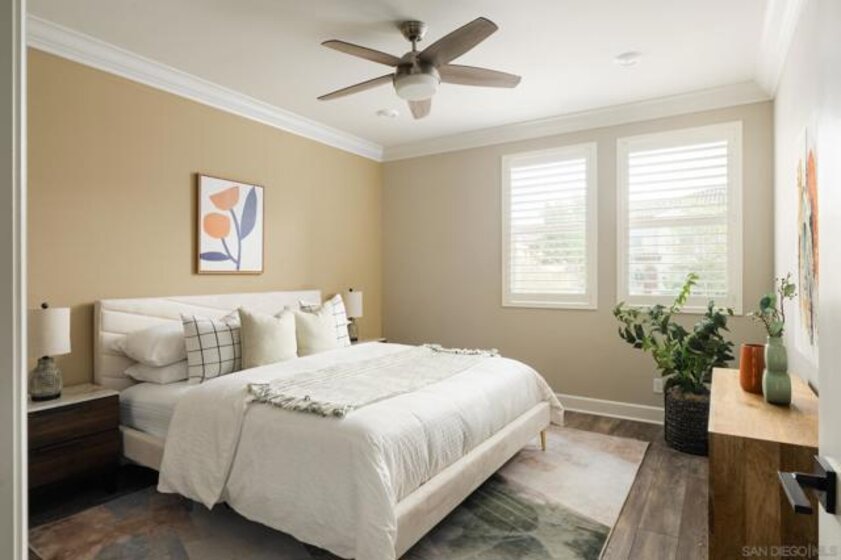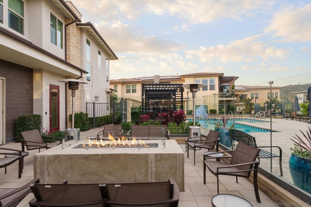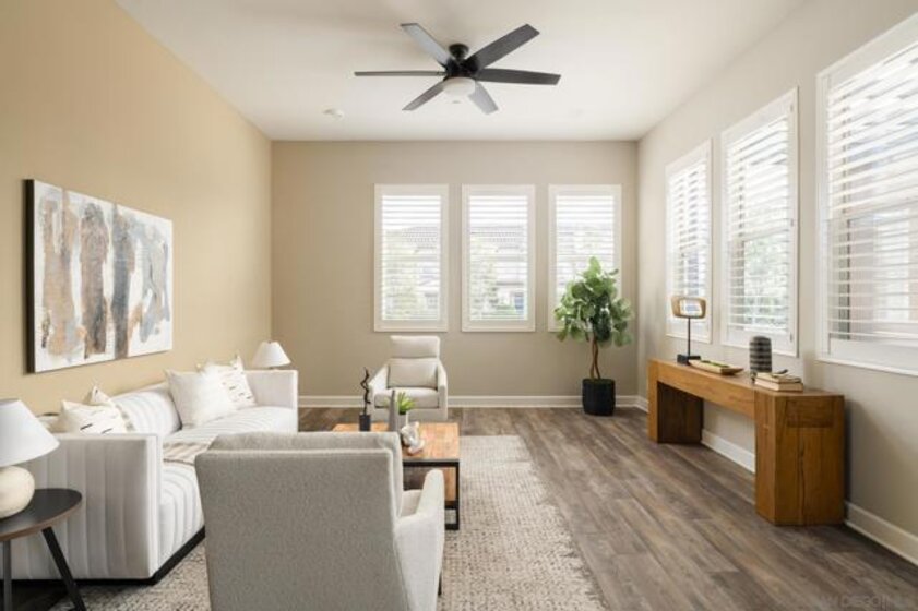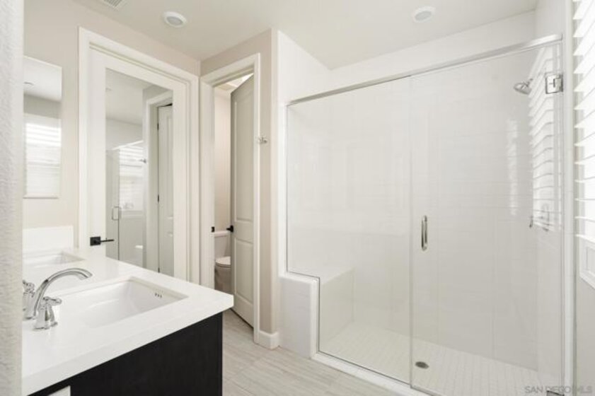 Ideally situated within the prestigious 55+ gated enclave of Avante at Del Sur, this beautifully appointed dual-suite Plan 3 residence offers a refined blend of modern design and effortless living. Built in 2018, the home is filled with natural light and showcases a thoughtfully designed open-concept layout highlighted by high ceilings, wide-plank upgraded flooring, recessed lighting, and custom shutters throughout. The gourmet kitchen serves as the centerpiece of the home, featuring quartz countertops, stainless steel appliances, a sleek modern backsplash, generous cabinetry, and an expansive center island that seamlessly connects the dining and living areas—perfect for both intimate gatherings and everyday enjoyment. Both bedrooms are designed as private en-suite retreats, each offering walk-in closets and spa-inspired bathrooms that create a sense of comfort and tranquility. Additional highlights include a private in-home elevator for effortless access between levels, a finished two-car garage, a spacious laundry room, and inviting outdoor living spaces with both a balcony and patio—ideal for relaxing or entertaining. Residents of Avante enjoy exclusive access to a resort-style clubhouse complete with pool and spa, state-of-the-art fitness center, lounge, game room, BBQ area, and welcoming fire pits. As part of the award-winning Del Sur master-planned community, homeowners also benefit from 11 community pools, 14 parks, scenic walking trails, and convenient shopping and dining at Del Sur Town Center. This exceptional residence delivers a rare opportunity to enjoy luxury, comfort, and a vibrant 55+ lifestyle in one of North County San Diego’s most desirable communities.