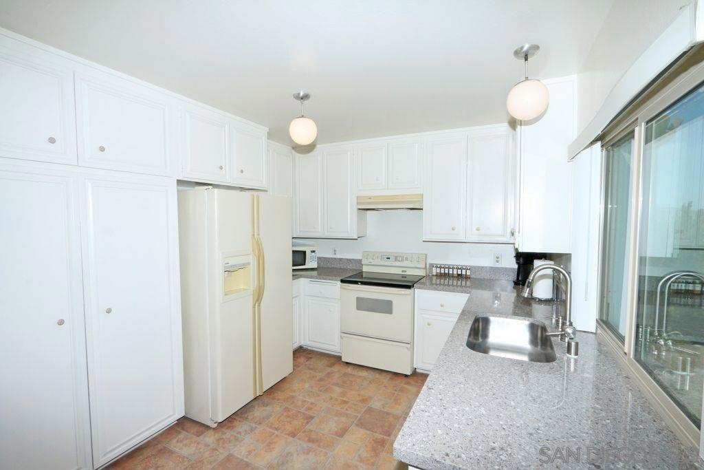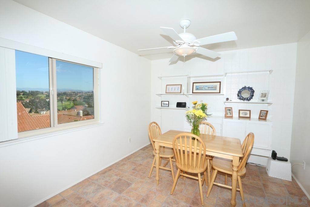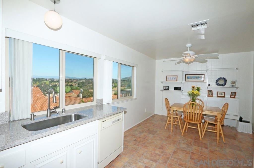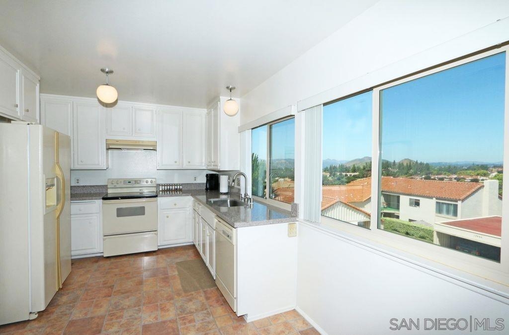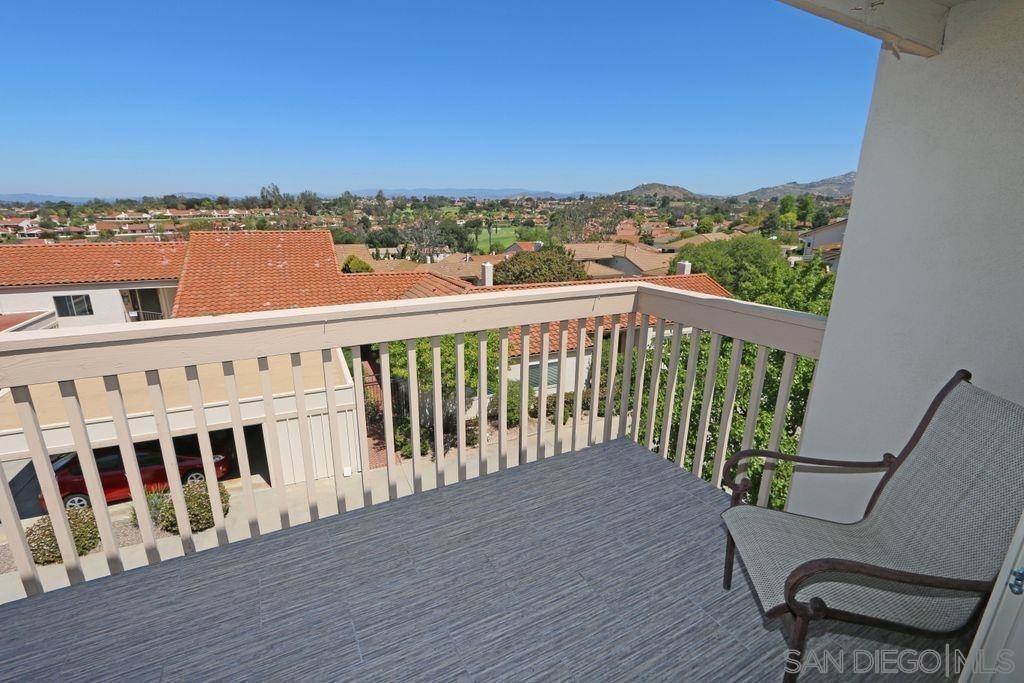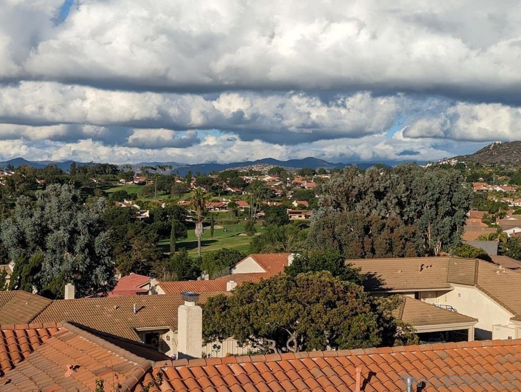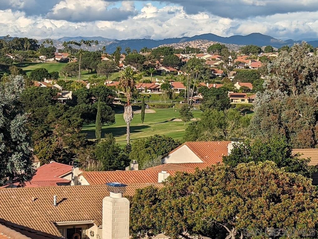Panoramic views of the Oaks North Golf Course and mountains from this lovely top-floor condo! Enjoy the views from the living room, kitchen, both bedrooms, and back patio. Approximately a half mile from the Bernardo winery, golf cart zoned. This home has dual pane sliding doors and windows, quartz countertops and stainless-steel sink in the kitchen, tiled back and front patios, ceiling fans, full-size stackable washer/dryer and a utility sink in the laundry closet. The living room area has a built-in alcove that's perfect for an office.