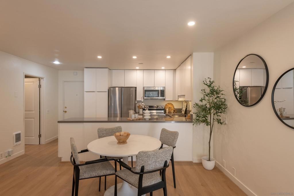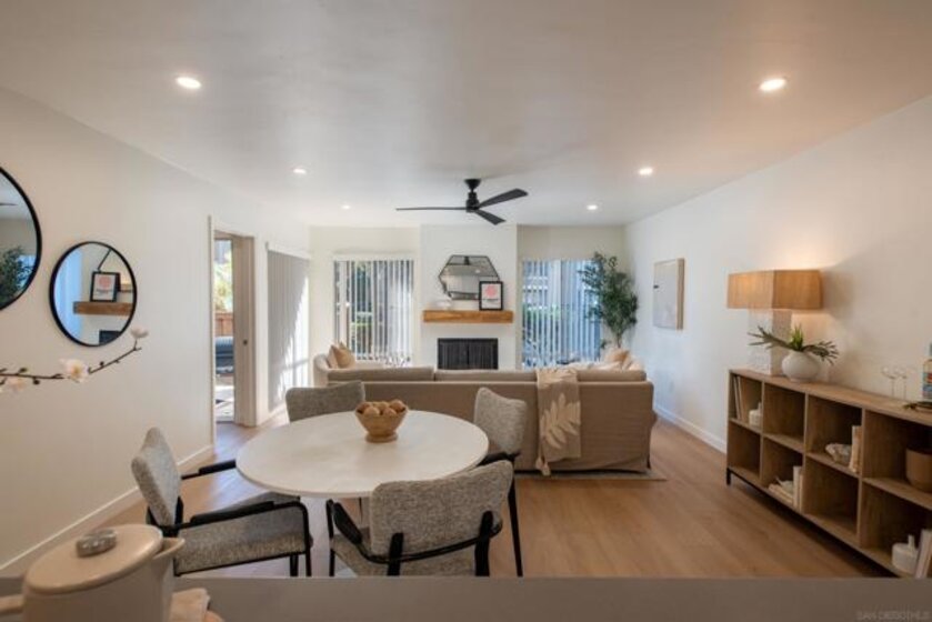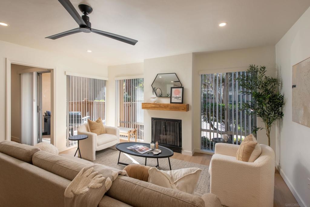 Beach living and walkability at its finest! This remodeled 2-bedroom, 2-bath unit is ideal for a first-time buyer, a college student, a second home, or anyone looking to downsize by the coast. The open living space is light and bright and is anchored by a cozy fireplace. Dual en-suite bedrooms, positioned on opposite sides of the unit, are perfectly tailored for roommates, visiting guests or a home office. Walkability is the name of the game with The Plaza being a straight shot walk down Diamond Street to the stairs on the boardwalk that lead down to the beach. It's also just around the corner from Trader Joes, Vons, Starbucks, The Broken Yolk, Fitness West, Sun Diego and more. The complex features four pools, a fitness center, library, billiards room, 24-hour security and more. Whether you're looking for your first home, a lock-and-leave beach escape or something in between, this unit in The Plaza is what you've been looking for.