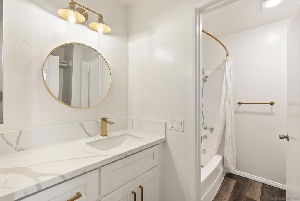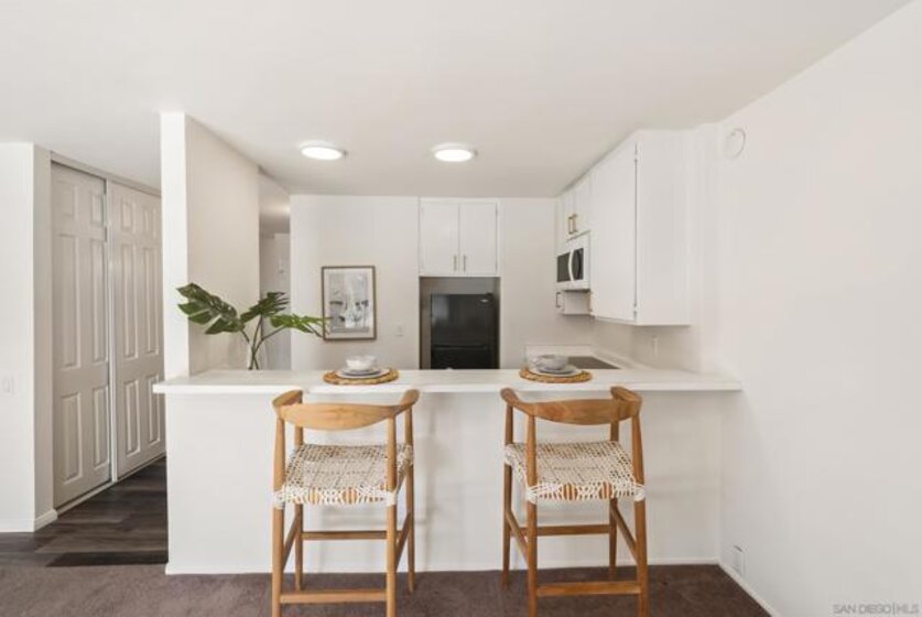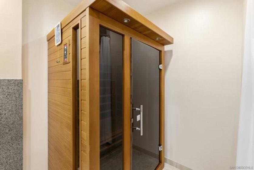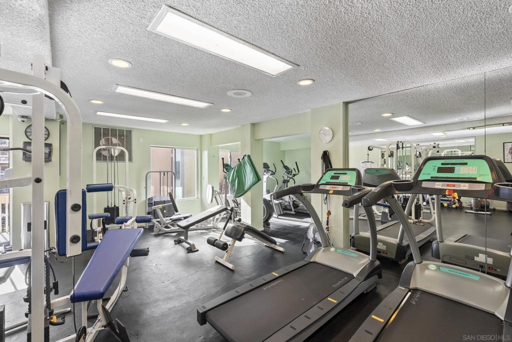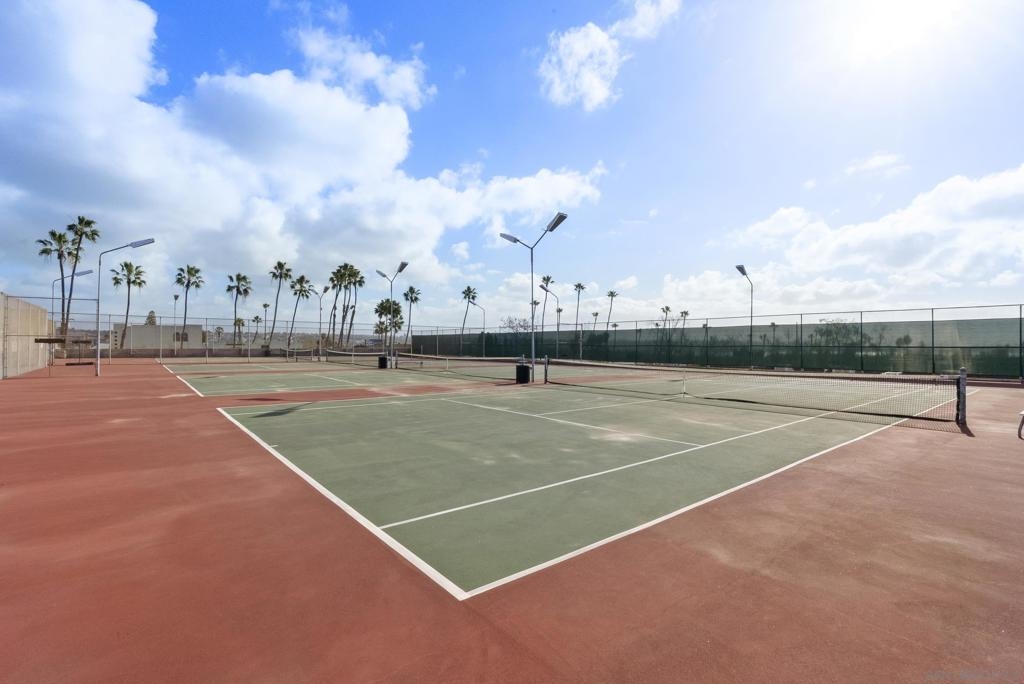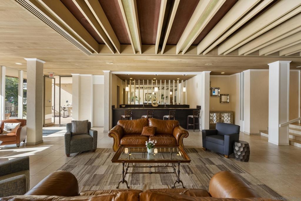 Welcome to resort-style living in the heart of Pacific Beach at The Plaza. This spacious second-floor studio with 1 secure gated garage parking space (#137), offers an exceptional opportunity to enjoy the SoCal lifestyle at an affordable price point. Just minutes from the beach, dining, and everyday conveniences. Elevated above the courtyard, the unit features an oversized 8 ft X 5 ft private patio overlooking the peaceful pool and greenery, creating a perfect indoor-outdoor retreat. Recent upgrades include a new (see suppl) electric panel, updated bathroom w/ new vanity | lighting | quartz counters | refinished bathtub surround, and brushed gold light fixtures throughout, offering both comfort and an elevated style. Convenient community laundry right next door so no neighbor on one side and quiet interior location. Inside, the layout is impressively functional for a studio, with a large 6 ft X 9 ft entry area ideal for additional storage, a full-size kitchen w/ modern appliances, and a convenient eat-at bar that opens seamlessly to the living space. The living area provides ample space for flexible furniture arrangements, making it easy to create distinct living, sleeping, and work-from-home zones. The Plaza community is known for its unmatched amenities, including 5 tennis courts, 4 swimming pools, a well-equipped gym, sauna, BBQ areas, massive community room and extended outdoor deck overlooking the beautiful central water feature, billiard room, library, and lush landscaped grounds that feel like a year-round resort. Located just a 3-minute walk to shopping, restaurants, and nightlife along Garnet Avenue, and less than 2 miles from the beach, this home offers effortless access to everything Pacific Beach is known for. Walk, bike, or cruise to the sand while enjoying a low-maintenance lifestyle that doesn’t break the bank. A rare value in one of San Diego’s most desirable coastal communities.