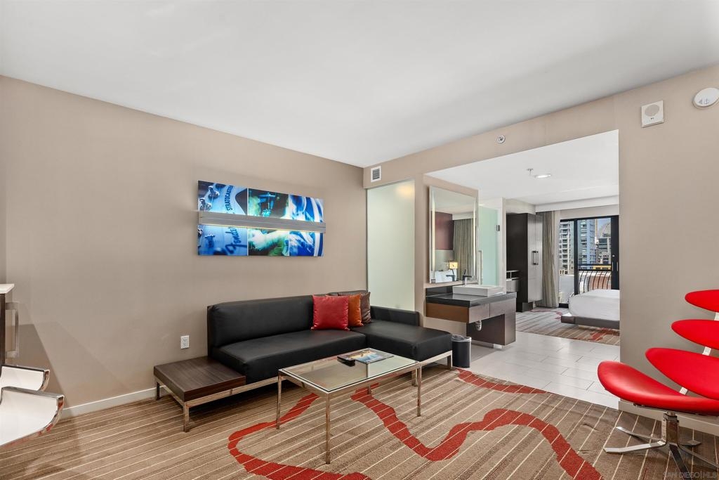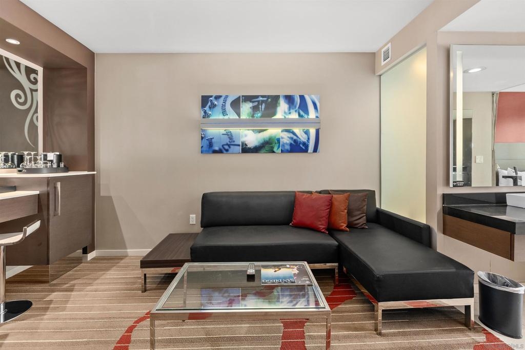 CASH ONLY - The Hard Rock Hotel is located in the heart of the Gaslamp District and across the street from the Convention Center. Residence 1042 is an East facing One Bedroom with one king bed. This property has views of Petco Park and has a separate living room and semi-private bedroom area (with a privacy curtain). This unique property offers world class service, location and amenities with a great view. Owners may enter these rooms into a rental management program and share the revenue and/or use it for personal use. Unlike traditional rental properties, owners have have more flexibility at the Hard Rock and even have a private owner lounge. You cannot live in these properties.