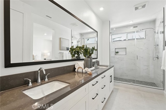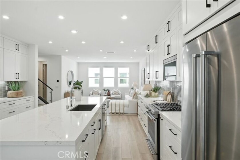 Welcome to Everly at Civita by Toll Brothers, a new community located in San Diego which is close to world class beaches, downtown, exponential shopping and dining and easy freeway access. Homesite 1002 is a new construction home that is primely located in central Civita. The E2 floorplan features 4 bedrooms, with 3.5 bathrooms, and is 2,192 sq. ft, with a 2-car garage. This amazing floorplan offers floor to ceiling window that allows the natural sunlight to shine indoors. Upon entering the home take notice of the downstairs bedroom with full bath great for guests or a home office. The 2nd floor living area features a spacious chef’s kitchen with an expansive center island. The kitchen and island are centered in the middle of open-concept floor plan offering an entertainers dream for gathering and has a large kitchen pantry for additional storage. There is a functional covered deck off the dining room area which combines indoor and outdoor living San Diego is so well known for. The 3rd floor is comprised of a large primary bedroom suite and has a big walk-in closet. The secondary bedrooms are on the opposite end of the home making this home perfect for functionality. Laundry Room is conveniently located on the 3rd floor making your day to day living delightful. Highlights of the home include upgraded whole house Anew Grey cabinets with chrome pulls, upgraded full slab quartz counters in kitchen with full slab backsplash, upgraded primary shower wall and floor tiling, brand-new full-size Whirlpool stacked washer and dryer, KitchenAid stainless steel appliances, upgraded luxury Shaw warm grey wood flooring on main living areas, tankless water heater, owned solar, electric car charging outlet, additional electrical throughout and interior insulation package are just some of the many included options built into the price of this home. Homesite 1002, has an estimated closing date October 2025.