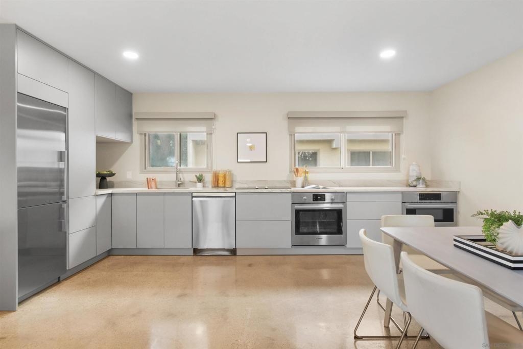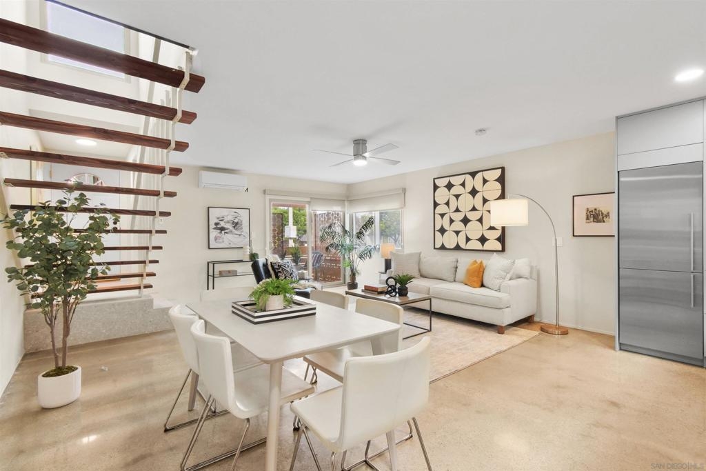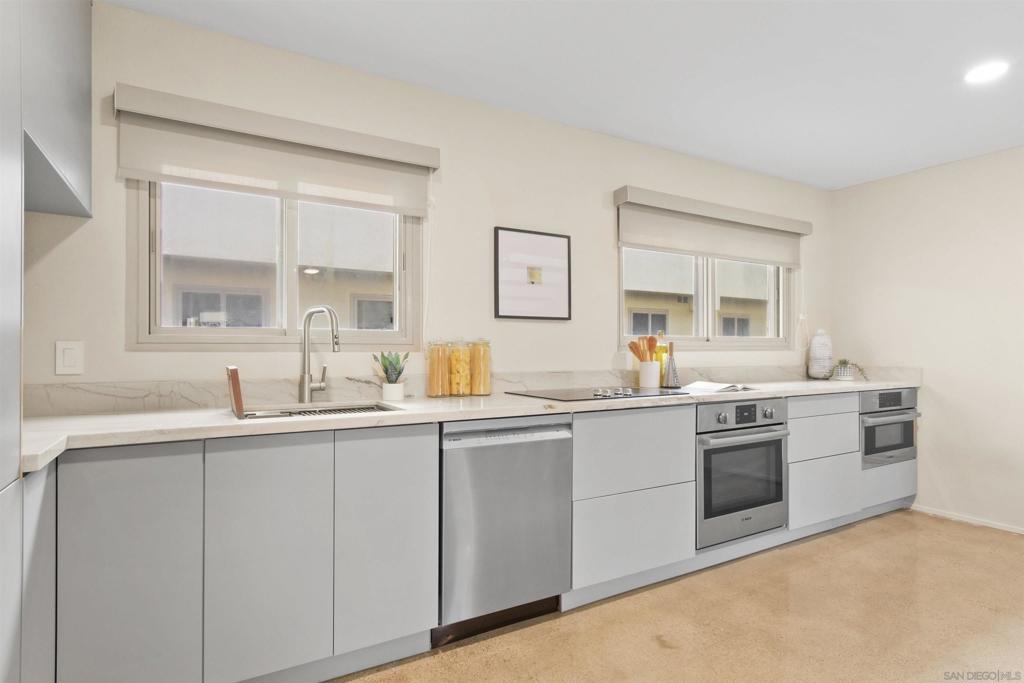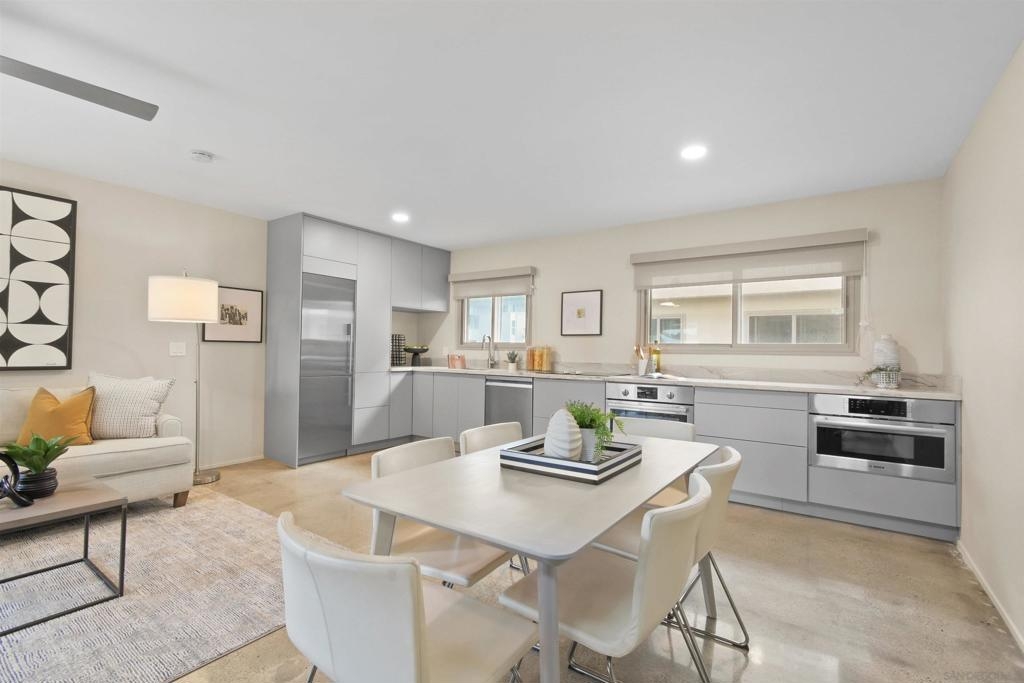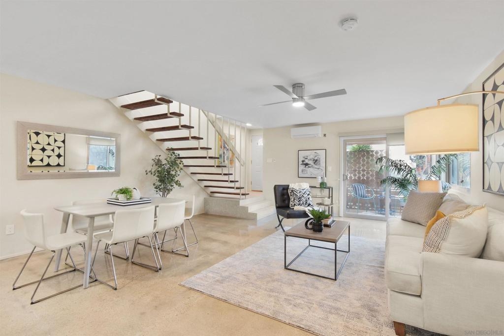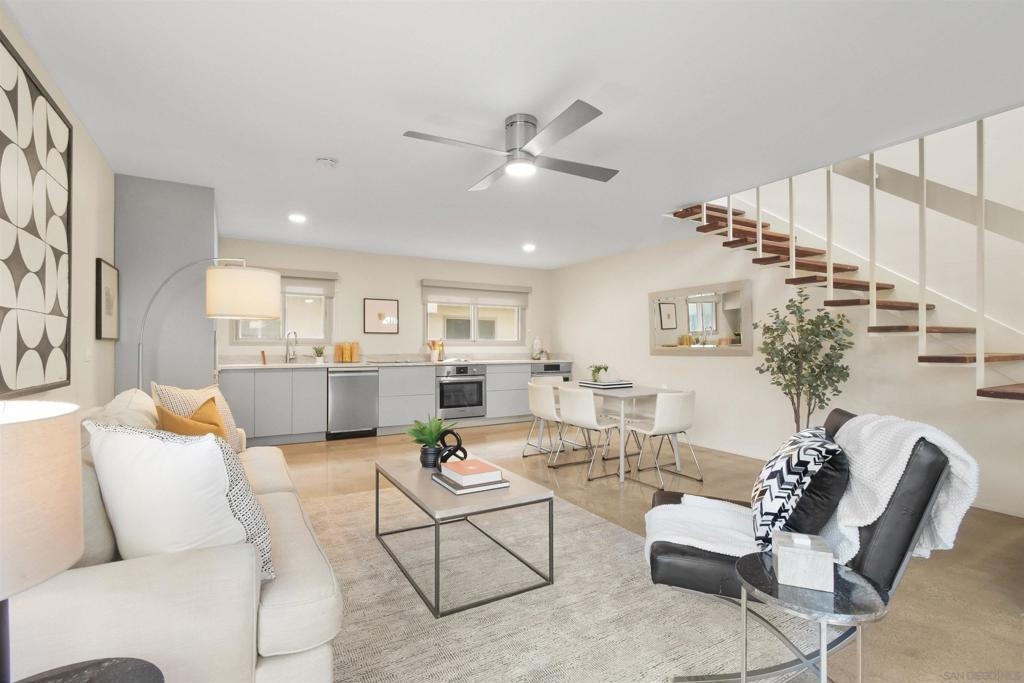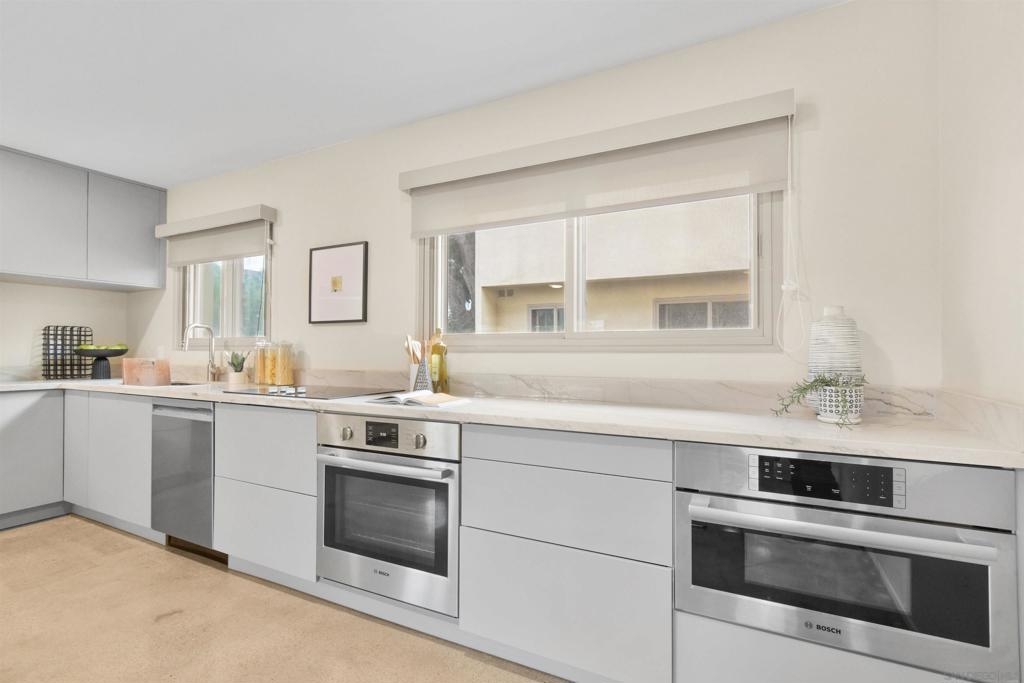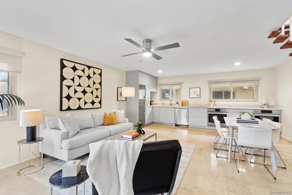 Point Loma Tennis Club at its finest! This stunning 2 Bedroom, 2 bath, Modern corner townhome. TWO side by side covered parking and storage! Modernism from top to bottom. No expense was spared from the Terrazo flooring, Remodeled kitchen, polished concrete floors, oversized great room, dual pane windows, custom window treatments, open wood stairs, newer heat and air. Large primary bedroom, perfect for your king-sized bed, plenty of closets, laundry hookups on the second level and adjoining full bath. The second bedroom also opens the primary bathroom. Both bathrooms have been completely remodeled. The complex is spalling with huge grassy areas, pool, spa, club house, tennis, sports court, Billard room, gym, BBQ area, sports court and more! Don't let this one get away!!!!