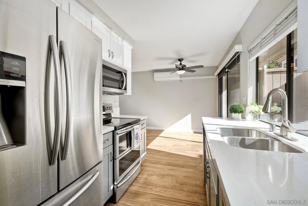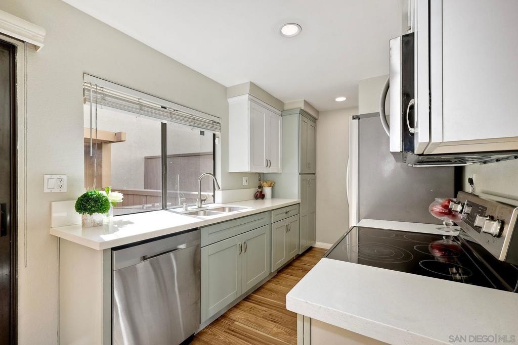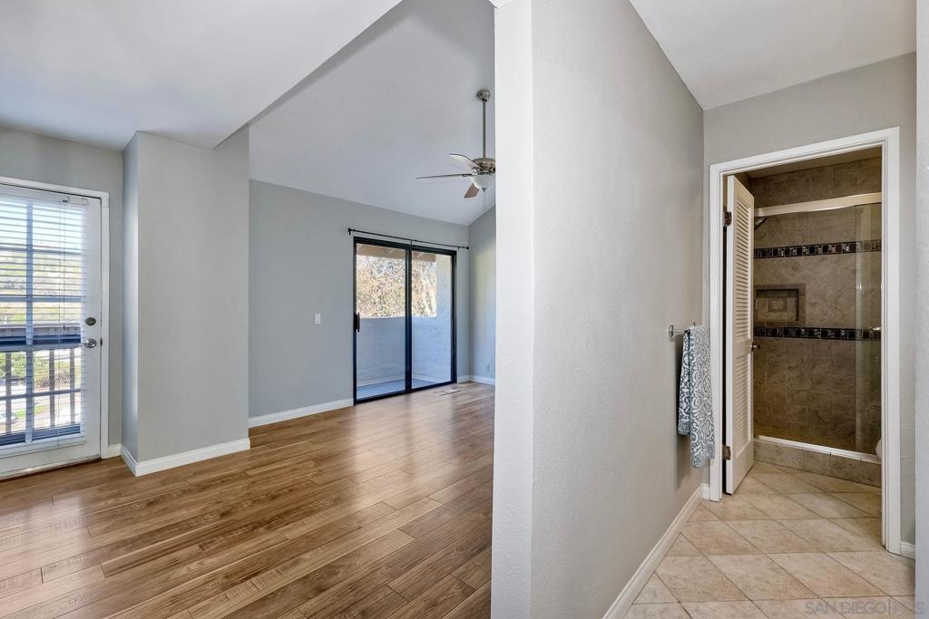 Fantastic opportunity to own in the highly desirable North Clairemont and Canyon Rim area! This beautiful townhome greets you with a spacious living and dining area featuring stunning laminate flooring and sliders that open to both the front and rear decks, allowing natural light to flood the space. The oversized back slider opens to a large deck, perfect for entertaining and extending your living area. The freshly painted kitchen is updated with sleek stainless steel appliances. Upstairs, you'll find two generously sized bedrooms, each with its own bathroom and private balcony. This home also includes an attached two-car garage with laundry hookups. Canyon Rim is a peaceful, tucked-away complex just 10 minutes from the beach, with easy access to the I-5 and 52 freeways, and a short drive to downtown, La Jolla, and UCSD. The well-maintained community offers a pool and spa, tennis and pickleball courts, BBQ areas, and a clubhouse—perfect for relaxation and recreation.