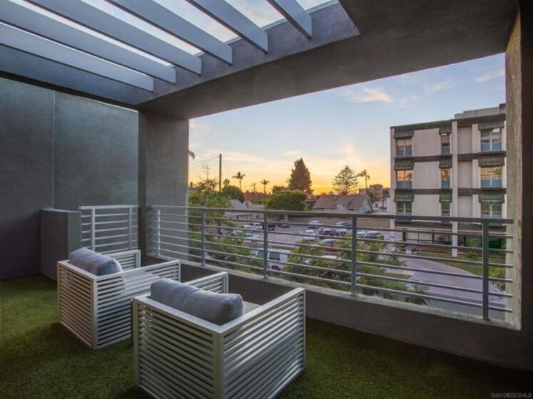 Introducing 307 Upas St — a truly rare opportunity in the heart of Bankers Hill. This is the only fully detached row home in the area, offering exceptional privacy with no shared walls—a rare opportunity just two blocks from Balboa Park. Enjoy a peaceful setting outside the flight path, with convenient access to nearby streets, neighborhood amenities, and an expanding selection of restaurants, bars, and coffee shops. Designed for modern living, this newer construction home features 10-foot ceilings, abundant natural light, and high-end finishes throughout. The chef’s kitchen is both stylish and functional with quartz countertops, walnut cabinetry, and a large entertaining island, complemented by extra-large sliding glass doors on both levels that create seamless indoor-outdoor flow. Nearly 600 square feet of private outdoor space includes multiple balconies and a rooftop terrace with sweeping views of the bay, ocean, and downtown skyline — perfect for relaxing or hosting. The primary suite offers a spa-like retreat with a soaking tub, dual vanities, and a serene, elevated feel. A two-car garage and non metered parking out front, let you fully enjoy the neighborhood without compromise. Modern, light-filled, and exceptionally located, 307 Upas St delivers privacy, design, and lifestyle in one of San Diego’s most sought-after neighborhoods.