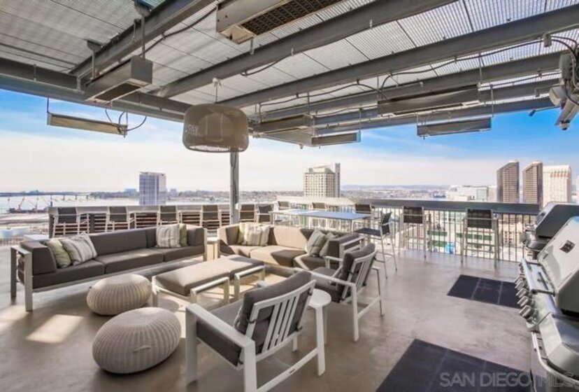 Welcome to ICON in East Village, where sophisticated urban living meets exceptional convenience. This chic 1-bedroom, 1-bathroom condo, covering 621 square feet, is a showcase of contemporary elegance. Experience the contemporary charm of exposed concrete walls and expansive windows that flood the space with natural light. The kitchen boasts stainless steel appliances and sleek granite countertops, complemented by rich wood floors. With an in-unit washer/dryer and a private balcony offering stunning city views, comfort is at your fingertips. ICON's HOA provides a well-rounded lifestyle with unparalleled amenities, including a deluxe full-size gym. Enjoy high-speed fiber optic WiFi, excellent service, and management available 24/7, with the only external bill being your electric bill. Unique to ICON, residents have access to one of only two skyboxes in downtown San Diego—a coveted feature that others pay memberships for, included in your living experience here. Just one street crossing away, the entrance to the marina and luxurious waterfront restaurants, including the Hyatt, Marriott, Hiltons, and Seaport Village, await. This rare opportunity offers a resort-style experience right in your backyard, less than five minutes away. Embrace luxurious city living at its finest. Welcome home!