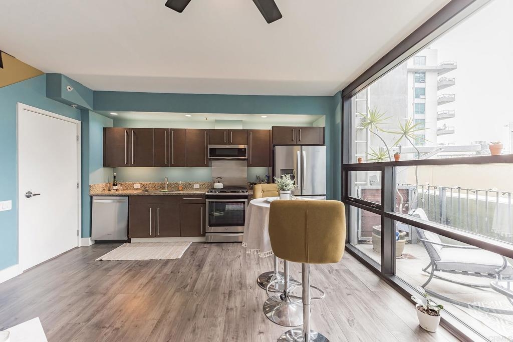Modern 2 Story ICON Beauty Remodeled & Upgraded.High Ceilings on Both Floors,Fresh Paint,Laminate Flooring,Concrete Staircase,Granite Kitchen w/ all new appliances .Large Balcony,View of Petco Park From Both Levels.Very Open Floorplan w/Tons of Natural Light.1/2 Bath Downstairs, While Upstairs Boasts a Huge Open Space with Limitless Possibilities, Full Bath w/Dual Sinks Along with Washer & Dryer and 2 Closets. ICON Features Famed Rooftop Lounge, with BBQ's,Big Screen TV,Stadium Style Seating w/AmazingViews of The Coranado Bridge,Petco Park, & Downtown.Complex Also Features A Movie Theatre and Community Lounge.Unit includes One Assigned Parking Space. This is a Very Unique Unit, One to Not be Missed. Equipment: Dryer, Washer