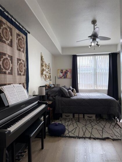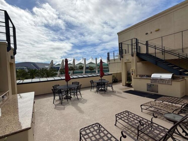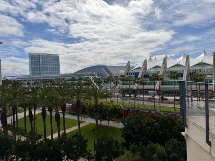 Experience luxury urban living in San Diego’s prestigious Marina District, directly across from the Convention Center. Gorgeous, bright, & remarkably quiet 2-BR, 2-bath offers a thoughtfully designed open floor plan ideal for modern living & entertaining. Spacious primary suite features a beautifully tiled flooring, walk-in shower & a generous walk-in closet. Wide-plank flooring, stainless steel appliances, granite countertops, & abundant cabinetry enhance the well-appointed kitchen. Oversized windows fill the home with natural light, while the private balcony, with its own storage closet, offers a pleasant outlook & seamless indoor-outdoor living. Additional highlights include central heating & brand-new air conditioning, ceiling fans, stacked washer & dryer, & two assigned parking spaces in a secure garage. Residents enjoy resort-style amenities including, fully equipped fitness center, landscaped courtyard, community & game room, meeting room, rooftop lounge with BBQ area & impressive city views. The electronically secured building features controlled access, two elevators, stairwells, & a conveniently located trash chute. HOA dues include water, sewer, trash, common area maintenance, & high-speed Google Fiber internet, creating a truly turnkey downtown lifestyle opportunity. Step outside & enjoy the best of downtown San Diego, Petco Park, Gaslamp Quarter, waterfront, Seaport Village, Trolley Station, Rady Shell at Jacobs Park, & countless restaurants, entertainment venues are all just minutes away. Balboa Park, San Diego Zoo, beaches, & medical centers are accessible.