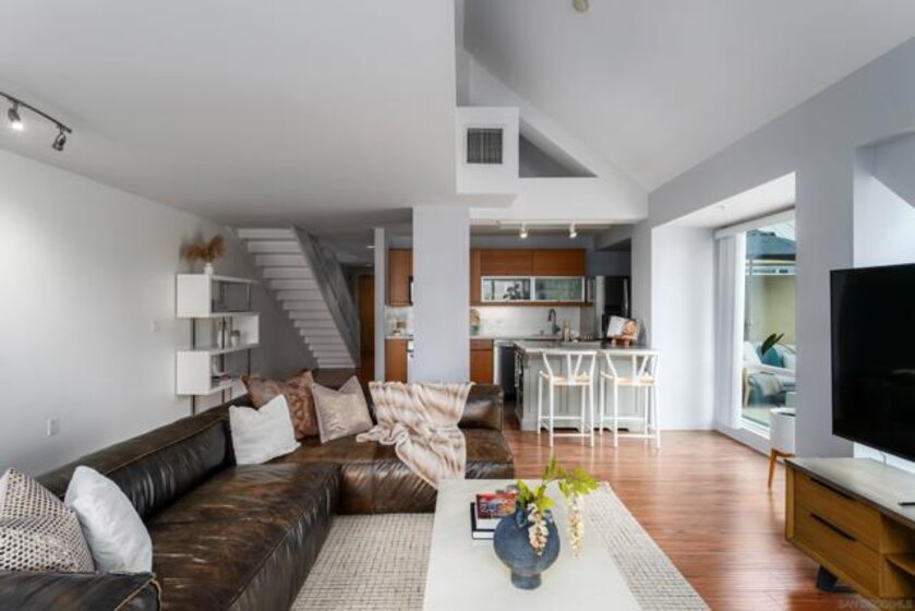 Sleek urban Penthouse in the heart of Little Italy! Perched on the top floor of 350 W Ash, this sky-high sanctuary offers panoramic views from the bay to the city skyline. This corner unit features floor-to-ceiling windows that flood the open-concept living space with natural light, while the oversized wraparound patio space is perfect for entertaining, relaxing and taking in the sunset - it truly feels like your own private rooftop escape. The kitchen features modern cabinetry, stainless steel appliances, and an eat-in bar that flows seamlessly into the living and dining areas. The upstairs primary retreat is thoughtfully separated for privacy and ocean views. The in-unit laundry, two side-by-side secured parking spaces, and separate assigned storage unit add incredible convenience to this one-of-a-kind property. Just steps to Little Italy's renowned dining, cafes, boutiques, and the weekly farmer's market - this is downtown living at its best, mixed with the lifestyle you never knew you needed.