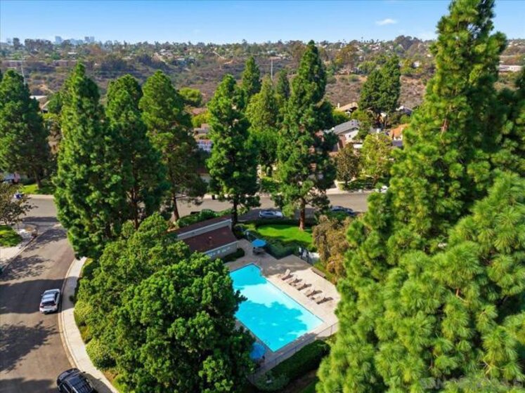 Spacious hillside townhome with bonus room, large backyard, and community pool! Set in a quiet San Diego hillside community surrounded by mature trees and canyon breezes, this inviting home features a thoughtful floor plan with a nice flow between two living areas and a separate dining space, offering flexibility for both relaxing and entertaining. The family room includes vaulted ceilings with skylights and a cozy fireplace, leading to a generously sized backyard with low-maintenance hardscape, a rare find for a townhome. A versatile bonus room provides extra space for a home office, playroom, or guest area, and there’s also a bathroom conveniently located on the lower level. Upstairs, the spacious bedrooms include a private primary suite with ample closet space and an en-suite bath. Additional highlights include a two-car garage with epoxy flooring and a 220V outlet for EV charging, a Nest smart thermostat/AC system, and a community pool perfect for warm San Diego days. Centrally located just minutes from Downtown, Balboa Park, beaches, and major freeways, this home offers the perfect blend of comfort, functionality, and convenience in a calm, tree-lined setting.