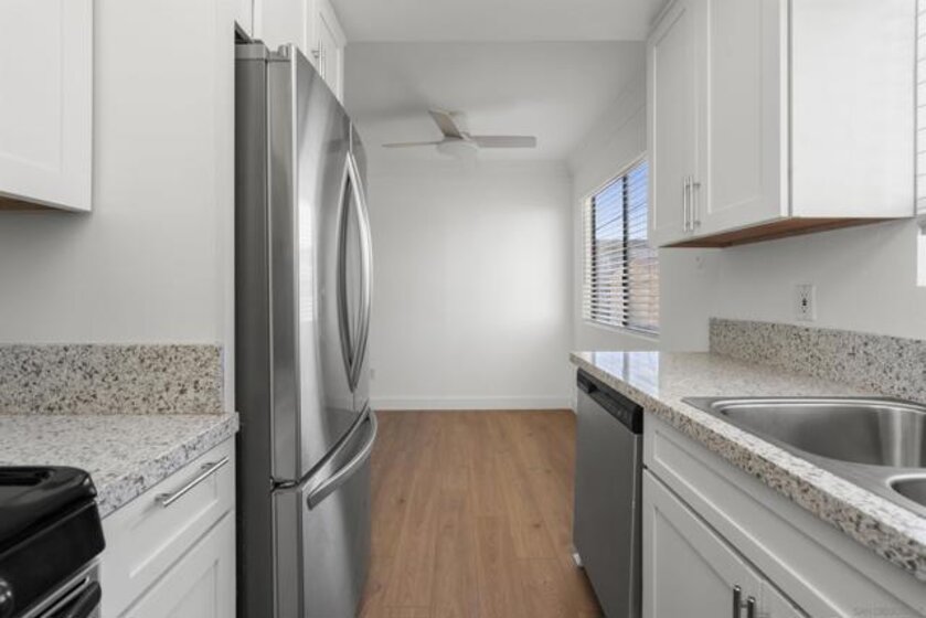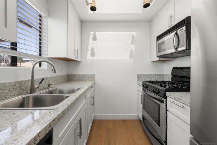 Experience the ultimate in urban living in the heart of North Park! This beautifully updated second-level unit features fresh new paint and stunning vinyl plank flooring throughout. This two bedroom / two bath home is filled with natural light, thanks to thoughtfully placed skylights in the kitchen and light tunnels in all bathrooms and the primary closet. The kitchen shines with white cabinets, solid surface counters, and stainless steel appliances. Plus parking is easy with your own one-car garage. This home is perfectly situated within a short distance to North Park's vibrant cafes, restaurants, and shopping, and just minutes from Morley Field, the San Diego Zoo, Mission Valley, and the 805 freeway. This home offers the best of city living!