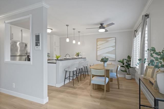 Welcome to Harbor Villas, nestled in the desirable Point Loma and Ocean Beach communities! Enjoy the best of coastal living with quick freeway access, just a 5-minute drive to the beach, and an easy stroll to lively Voltaire Street—home to local restaurants, shops, and fitness studios. This refreshed home features brand-new luxury vinyl plank flooring, triple-paned windows, plantation shutters, and crown molding throughout. The kitchen and bathrooms have been tastefully updated to blend modern style with relaxed coastal charm. Additional highlights include a two-car garage with extra storage, in-unit laundry conveniently located on your private patio, and one of the lowest HOA fees in the area. Experience comfort, style, and convenience—all in one beautiful coastal home!