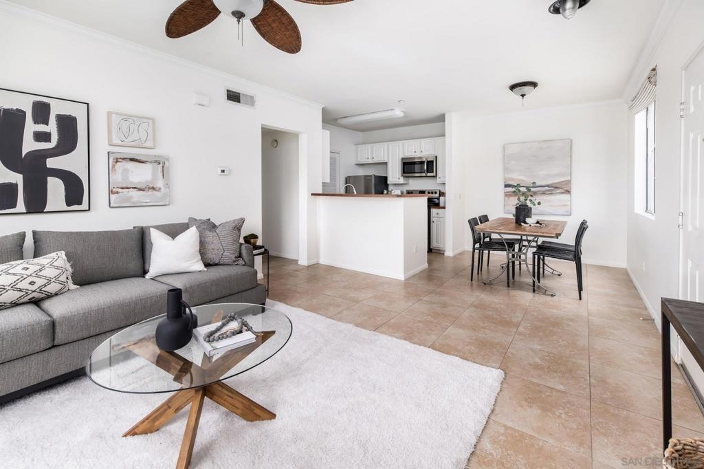 Nestled in the highly desirable Carmel Pointe community, this 1-bedroom, 1-bathroom condo offers comfort, convenience, and access to fantastic amenities. Freshly painted and move-in ready, this single-level condo features a bright and inviting living space, private balcony, white kitchen cabinetry and stainless steel appliances, dedicated full-size laundry space, primary bedroom with spacious walk-in closet, and 1-car garage with room for storage. Residents of Carmel Pointe enjoy access to a sparkling resort-style pool, clubhouse, BBQ area, and fitness center while having convenient access to picturesque walking trails. Perfectly located next to the Carmel Valley Rec. Center and award winning schools, just minutes to One Paseo and The Del Mar Highlands/Sky Deck, and commuter friendly with convenient access to highway 56 and the 5 freeway.
