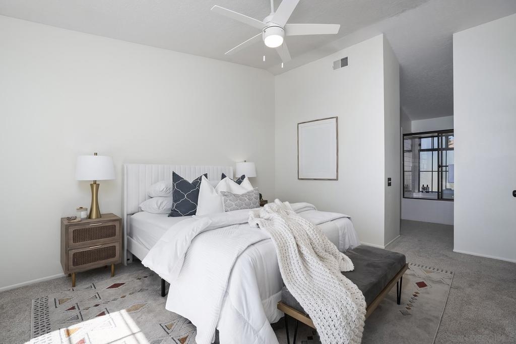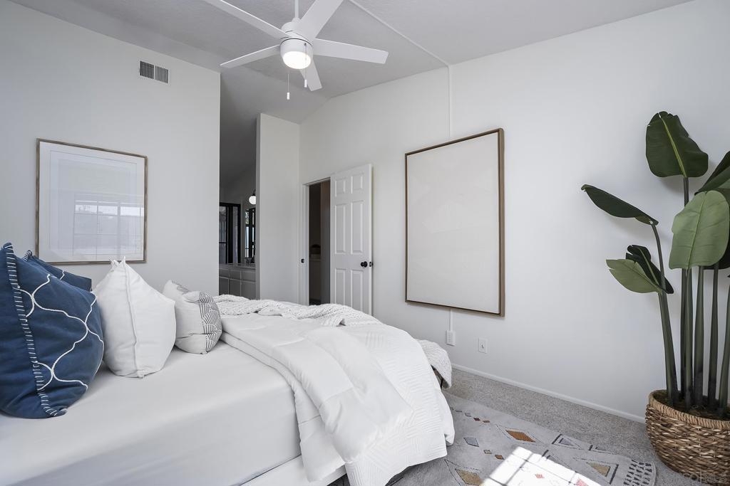 Move right into this desirable 3-bedroom, 3-bath townhome in the sought-after Coral Cove community of Carmel Valley. The home features a light and bright open floor plan with a great-room feel that flows out to a private, elevated sunny south-facing patio with views across the valley—perfect for relaxing or Al fresco dining. Freshly updated with brand-new carpet and a fully painted interior, this move-in ready home also includes a large attached 2-car garage and convenient guest parking. Ideally located just a 4 min walk to Pavillions the largest supermarket in the area. Coral Cove offers resort-style amenities including pool, spa, pickle ball and tennis courts, BBQ area. The well managed HOA covers water, landscaping, and pest control. No Mello-Roos. Minutes to shopping, easy freeway access, top-rated Del Mar Union schools, and only about 2 miles to Torrey Pines State Beach.
