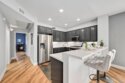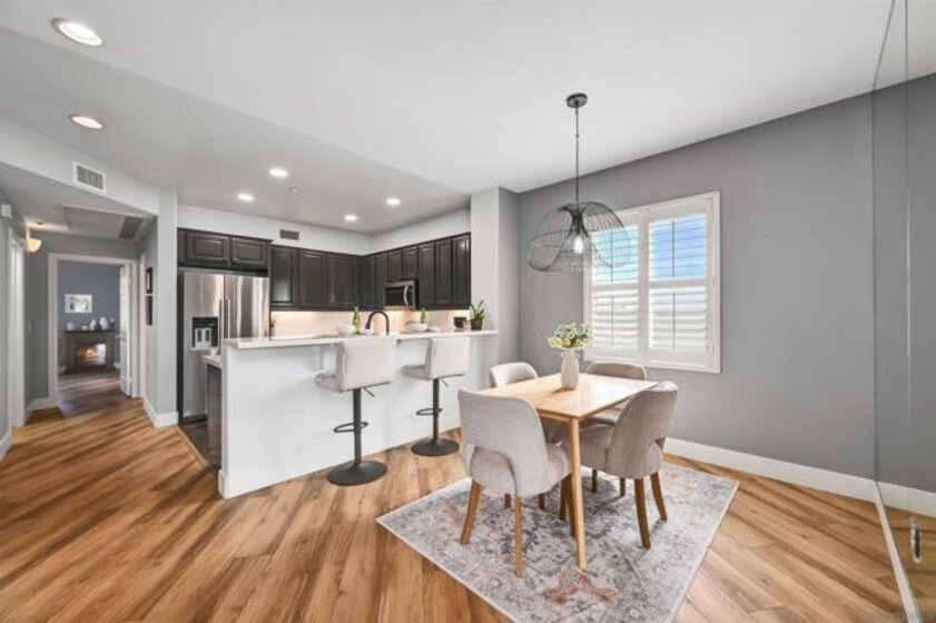 Former model home end unit with premium upgrades throughout! This beautifully updated townhome features a newer kitchen, upgraded flooring, and a renovated bathroom designed with modern finishes. Enjoy the added comfort of a whole-home water filtration system, providing clean, filtered water throughout the property. The garage includes a durable epoxy floor, offering a polished look and easy maintenance. With thoughtful improvements and model-home quality details, this home combines style, functionality, and convenience in a move-in-ready package.
