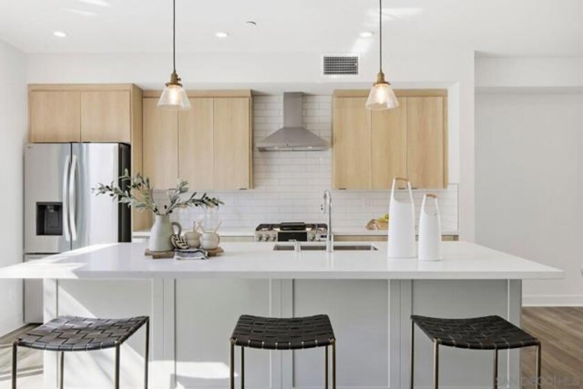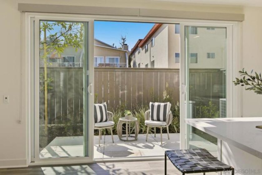 Nestled in the highly coveted Point Loma Heights neighborhood and newly built in 2024, this stunning contemporary townhome delivers modern coastal living at its best. Enjoy two stories of light-filled space within walking distance to shopping and acclaimed San Diego restaurants, and just minutes to Ocean Beach, Sunset Cliffs, Barnes Tennis and Pickleball Center and the energy of Liberty Station. Highlights include an owned solar system, central A/C, and an oversized two-car attached garage with hobby space and ample storage. The open-concept kitchen, dining, and living areas feature an expansive island, pendant lighting, quartz countertops, tiled backsplash, top-tier GE stainless appliances, a gas range, recessed lighting, and beautifully finished cabinetry with soft-close drawers. Private, enclosed landscaped patio for easy indoor-outdoor living. Luxury vinyl plank flooring runs throughout. A convenient powder room sits on the main living level, while the third floor offers a spacious primary suite and bath retreat, two additional bedrooms, and an additional full bath. Thoughtful upgrades include premium Norman sunshade blinds, a tankless water heater, vinyl windows, and a metal entry awning, along with an owned SunPower solar system and more. Contemporary, stylish, and truly move-in ready, this home checks every box.
