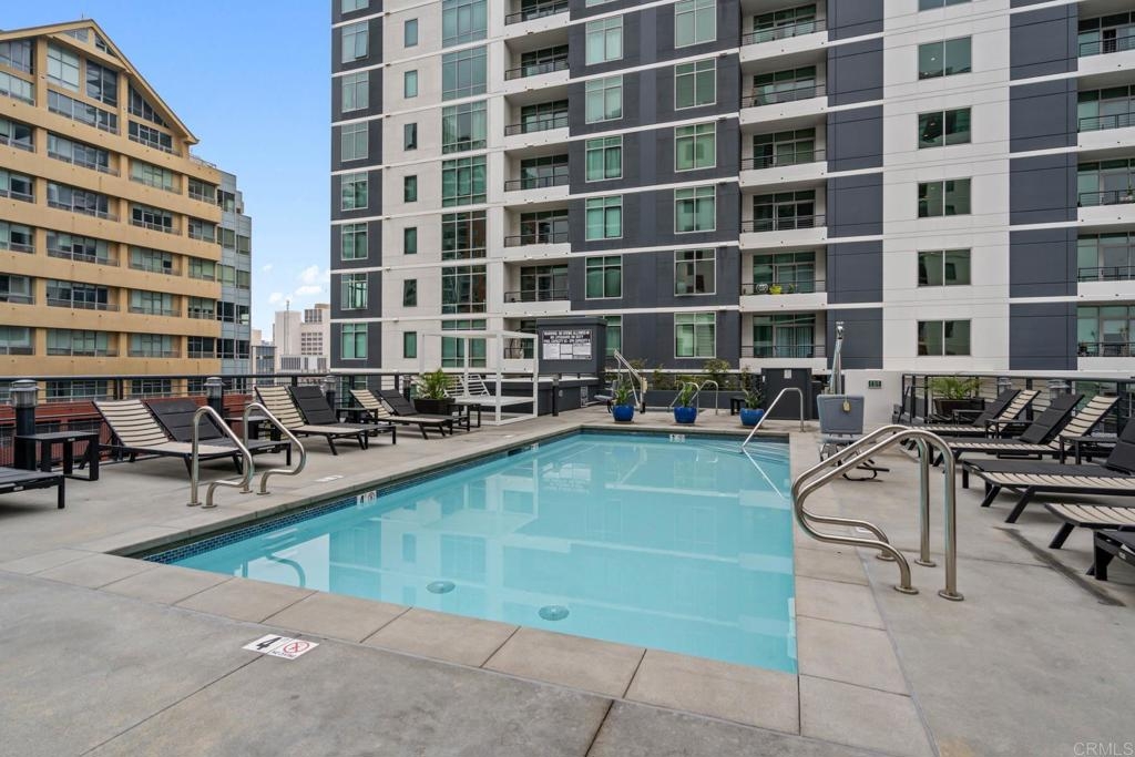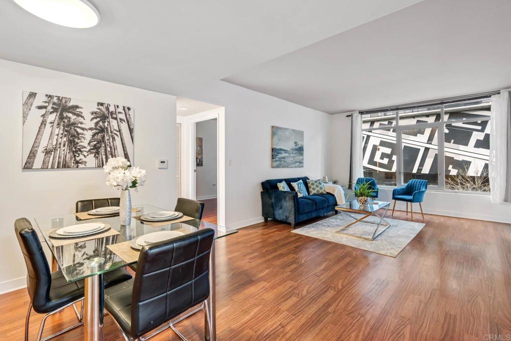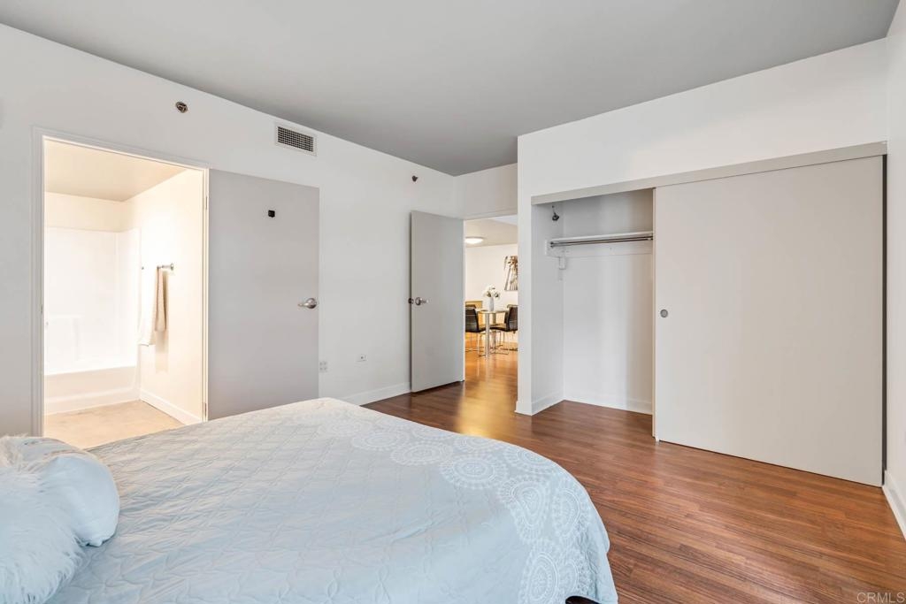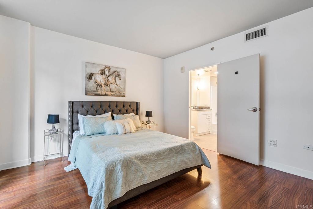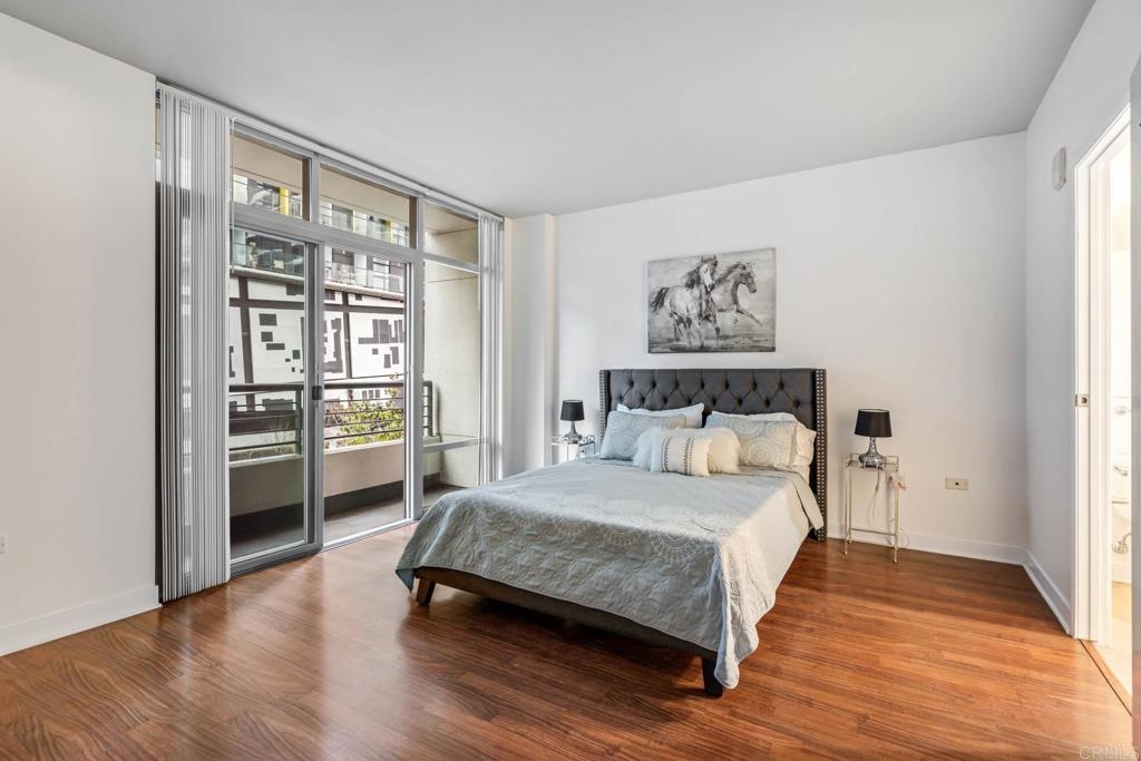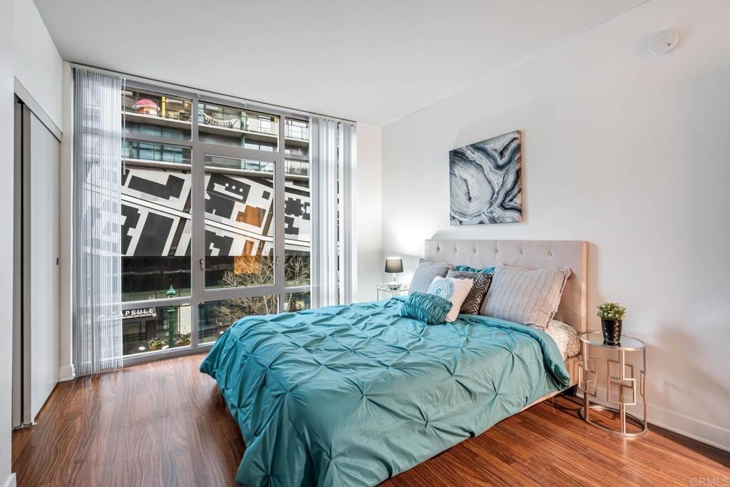 As you step into this unit, you'll be greeted by hardwood flooring throughout the spacious and open living area, complemented by floor-to-ceiling windows offering stunning city views from not just one, but both bedrooms. Imagine enjoying al fresco evenings with takeout from any of the neighborhood's celebrated restaurants and eateries! Retreat to the primary bedroom, which serves as a tranquil haven with a walk-in closet and ensuite bathroom boasting a newly finished shower/tub. Access the patio to enjoy the beautiful San Diego weather. The second bedroom is light-filled with floor-to-ceiling windows making it ideal for a home office setup. The kitchen includes ample cabinetry and an adjacent dining area perfect for entertaining guests. The Acqua Vista complex offers an array of amenities including a pool, hot tub, BBQ area, fitness center, clubhouse, complimentary valet, and 24/7 security with lobby attendants. Plus, enjoy easy access to all that Little Italy has to offer, including restaurants, shops, the harbor, and the famous Little Italy Farmers Market. Additional parking can be rented directly from HOA. Electric vehicle charging stations available. Pet friendly community Don't miss out on the opportunity to make this stunning condo your new home and experience the vibrant urban lifestyle of Little Italy! *Open house Saturday 3/23/20024 11am-2pm.