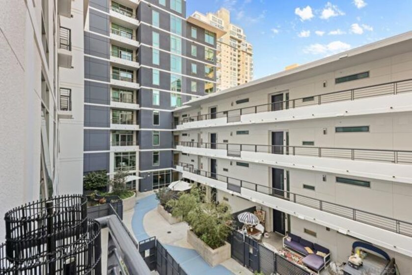 Tucked into the heart of Little Italy, this stylish 2-bedroom condo in the upscale Acqua Vista complex offers modern living in a convenient central location. Inside, a spacious layout opens with a sleek, upgraded and modern kitchen featuring clean lines and contemporary finishes. A dedicated dining area flows into a bright living space. The home’s interior courtyard location allows for added privacy and a quieter atmosphere. The large primary bedroom includes a generous walk-in closet, while the in-unit laundry creates added convenience. Residents of Acqua Vista enjoy premium amenities, including 24-hour security, a community attendant in the lobby, and valet parking. Recent HOA upgrades have transformed the building with new designer-selected interiors, fresh exterior paint, lush landscaping, upgraded carpeting, and curated artwork throughout. The completely renovated pool and spa area now offers fire tables, cabanas, lounge seating, and BBQ stations, all perfect for entertaining. Step outside to explore Little Italy’s vibrant mix of cafes, fine dining, weekend farmers markets, and scenic waterfront. With quick access to the 5 freeway, this coveted location keeps you close to everything San Diego has to offer.