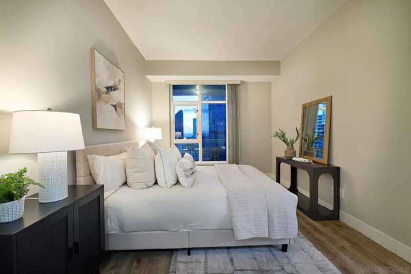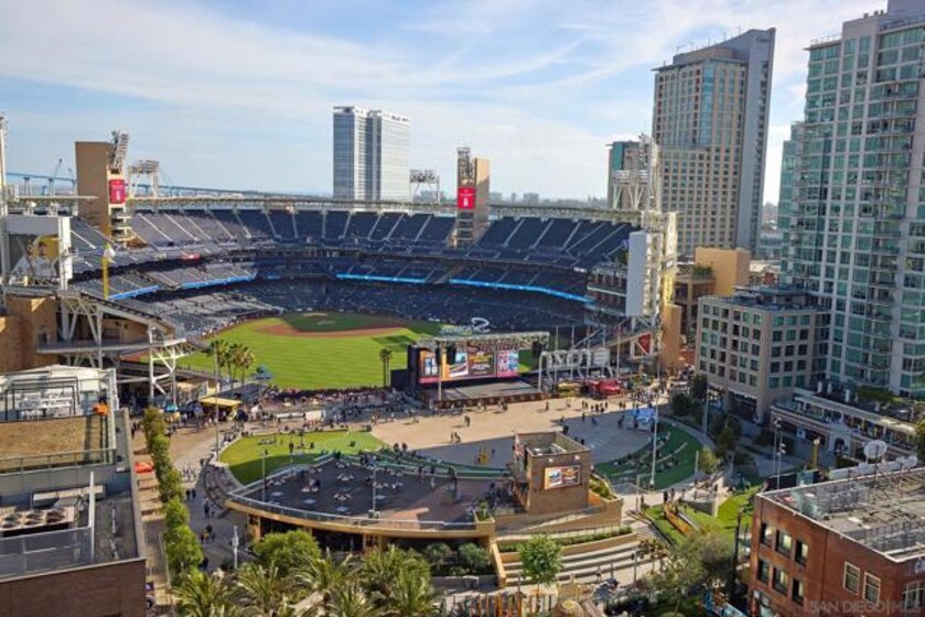 Batter Up! Step into urban luxury on the 13th floor of Diamond Terrace, offering breathtaking views of Petco Park and Gallagher Square from your private balcony—perfect for catching games, concerts, or stunning sunsets. This sleekly remodeled home features modern finishes, high ceilings, in-unit laundry, gated assigned parking, and spacious storage locker. Exclusive access to the rooftop terrace with BBQ, dining areas, fitness center and lounge, all just steps from downtown’s vibrant dining and entertainment scene. Just in time for baseball season, this stunning 13th-floor corner unit at Diamond Terrace is a home run! With JAW-DROPPING views of Petco Park, Gallagher Square, City, Coronado Bridge, and even the islands, you’ll have front-row seats to all the action—right from your private balcony. Enjoy the best of urban living with the convenience of an in-unit washer/dryer, gated assigned parking, a generously sized storage locker, and spacious rooms featuring soaring ceilings. A stylish top-to-bottom designer remodel! Common area rooftop terrace, with dining areas and BBQ, as well as a fitness center and lounge. The ideal location for easy exploration of endless dining and entertainment options that downtown has to offer. "Park at the Park" across the street is perfect for your pup. VA Approved,1 pet allowed under 100lbs, 2nd pet possible with HOA approval. Check out the virtual tour!