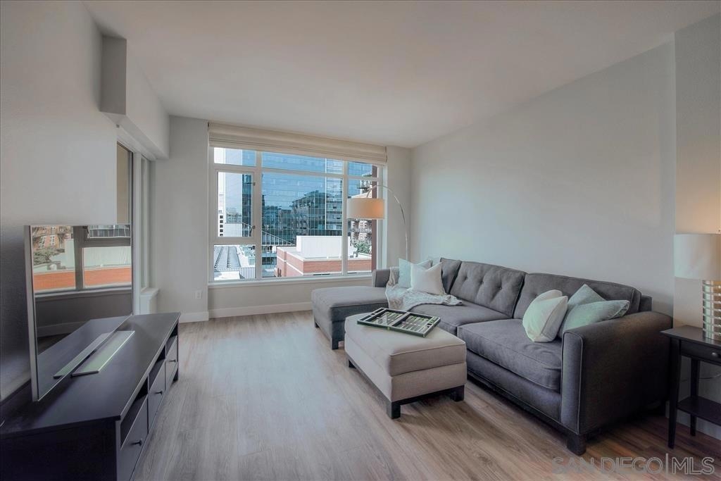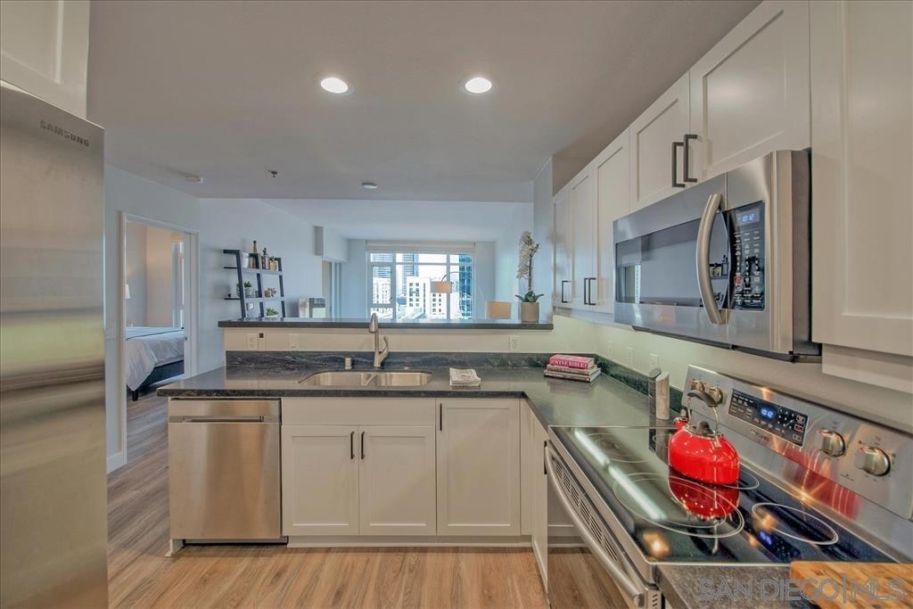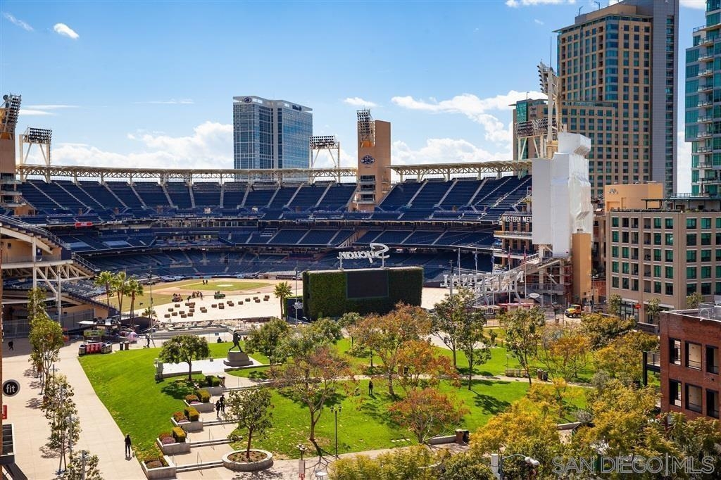 Price reduced! View, View, View!!! Sleek, modern, clean. No detail forgotten in this beautifully remodeled Petco Park stunner. Enjoy unobstructed views into Petco Park from your pristine home. All New wood floors, kitchen appliances, granite counters, 'smart touch' kitchen faucet, finished cabinets, LED lighting and fresh paint throughout. Immense closet space throughout with custom walk-in closet, kitchen with walk-in pantry, and additional space-saving features include in-wall safe and in-wall ironing board. Smart home design features voice controlled lighting, thermostat and door lock, plus automated blinds. One parking and storage unit. Explore the endless dining and entertainment options that Downtown has to offer, take in a game or walk your furry friend at Park at the Park. Diamond Terrace is named for its view into the "Baseball Diamond" infield of Petco Park. A spectacular view of home plate from the common area roof terrace, appointed with dining areas and a community BBQ, Fitness Center, and Community Lounge. Diamond Terrace is perfect for the buyer looking to purchase a property with great value in a prime location.