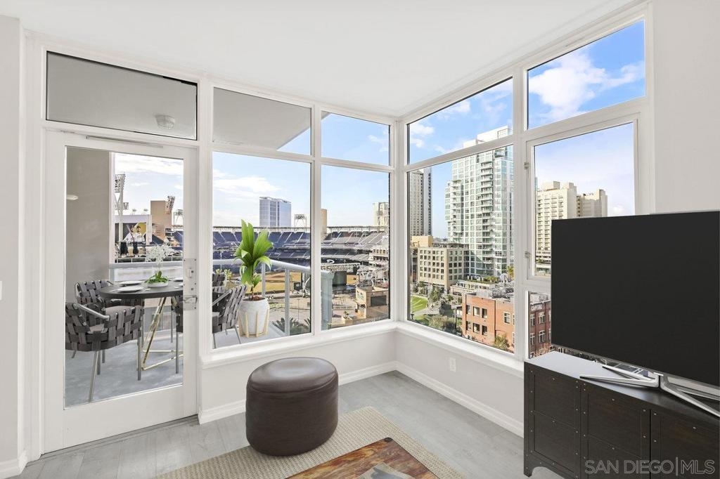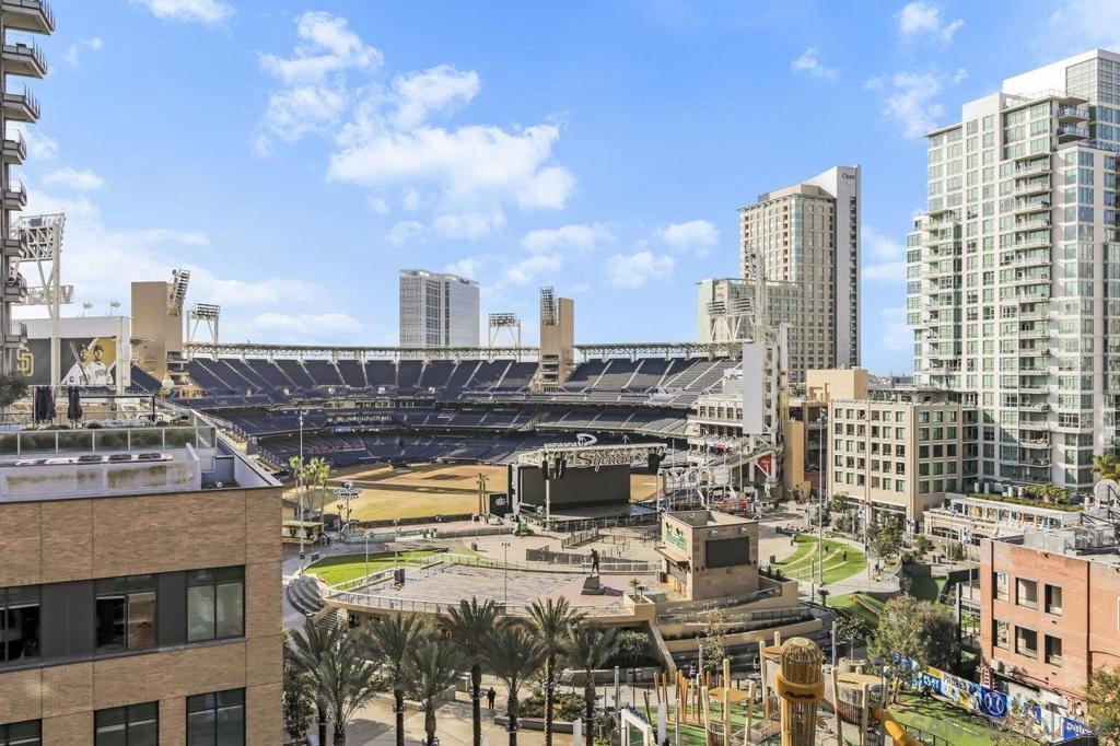 The energy and essence of this residence must be experienced in person—no screen can truly capture its unique atmosphere. Offering unparalleled views directly into home plate, you’ll feel the energy of the ballpark from the comfort of your own home—so close you can hear the crack of the bat and the ball hitting the glove! Step into this extraordinary 2-bedroom, 2-bathroom condo in the highly coveted Diamond Terrace building, perfectly positioned in the heart of East Village. This stylish unit features an open layout that seamlessly brings the beauty of the downtown skyline into every room. The updated flooring, modernized bathrooms with large-format tiles, and a refreshed kitchen with sleek finishes elevate the entire living experience. The bathrooms and shower are a true highlight, featuring luxurious tile finishes that exude elegance and comfort. The thoughtfully designed space includes a large walk-in pantry, plenty of in-unit storage, and two tandem parking spots for ultimate convenience. Whether you're hosting friends for game day or simply enjoying the dazzling city views, this condo delivers on every level. Don’t miss your chance to own a front-row seat to the best of East Village living. These units don’t come on the market very often!