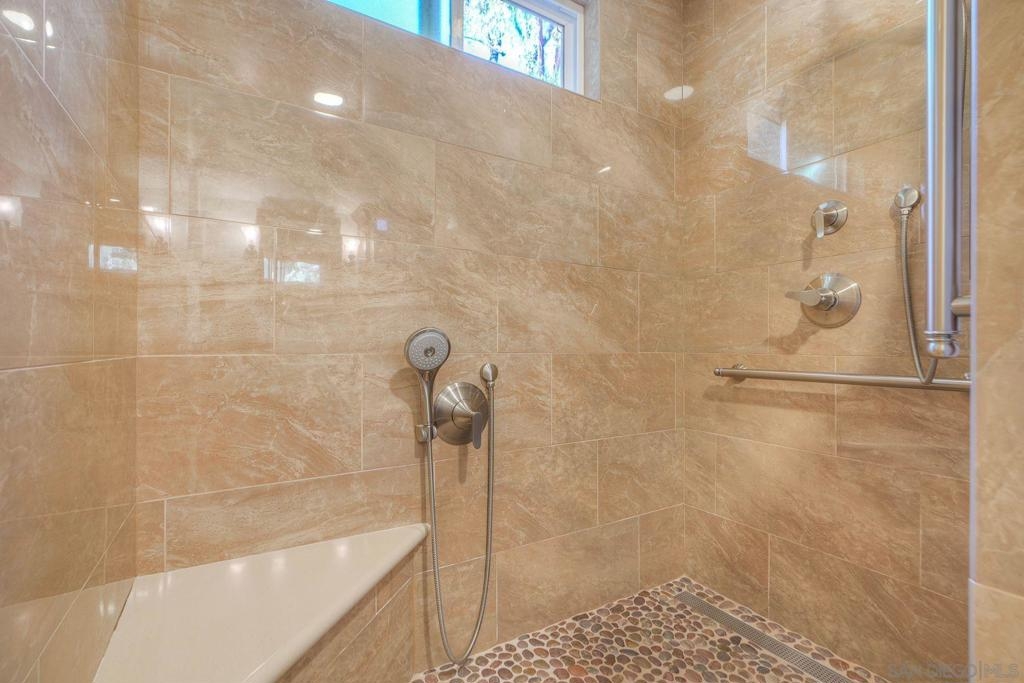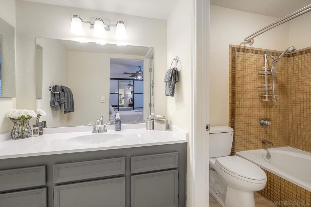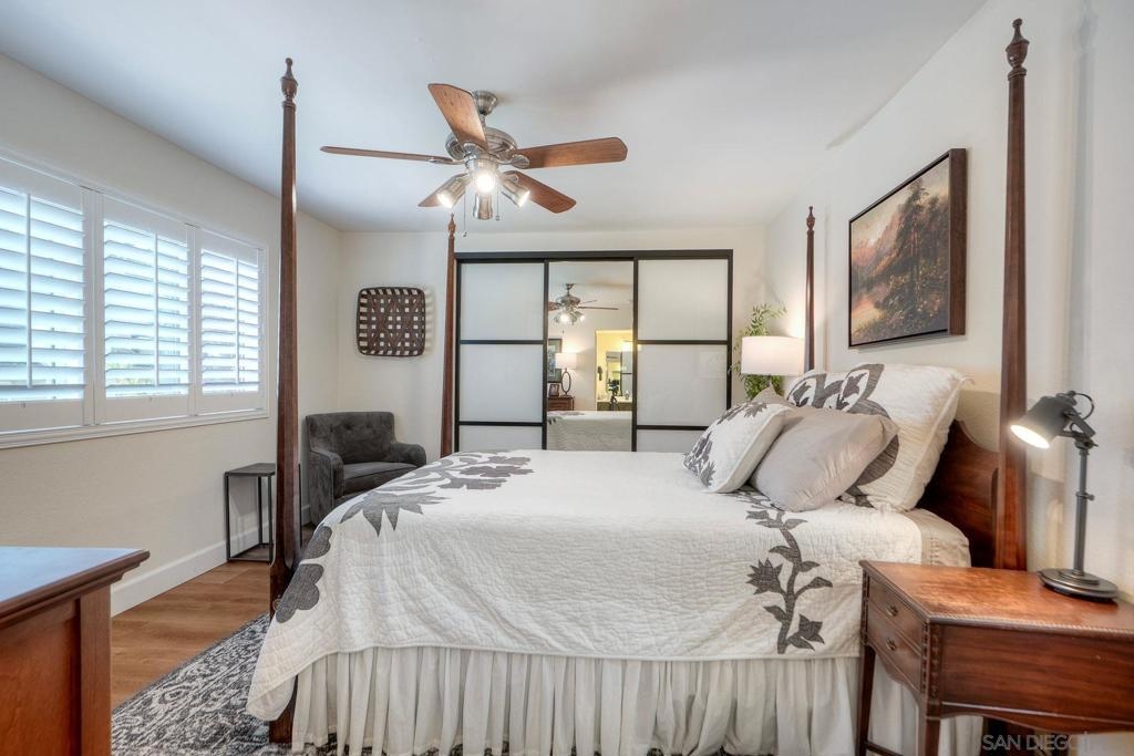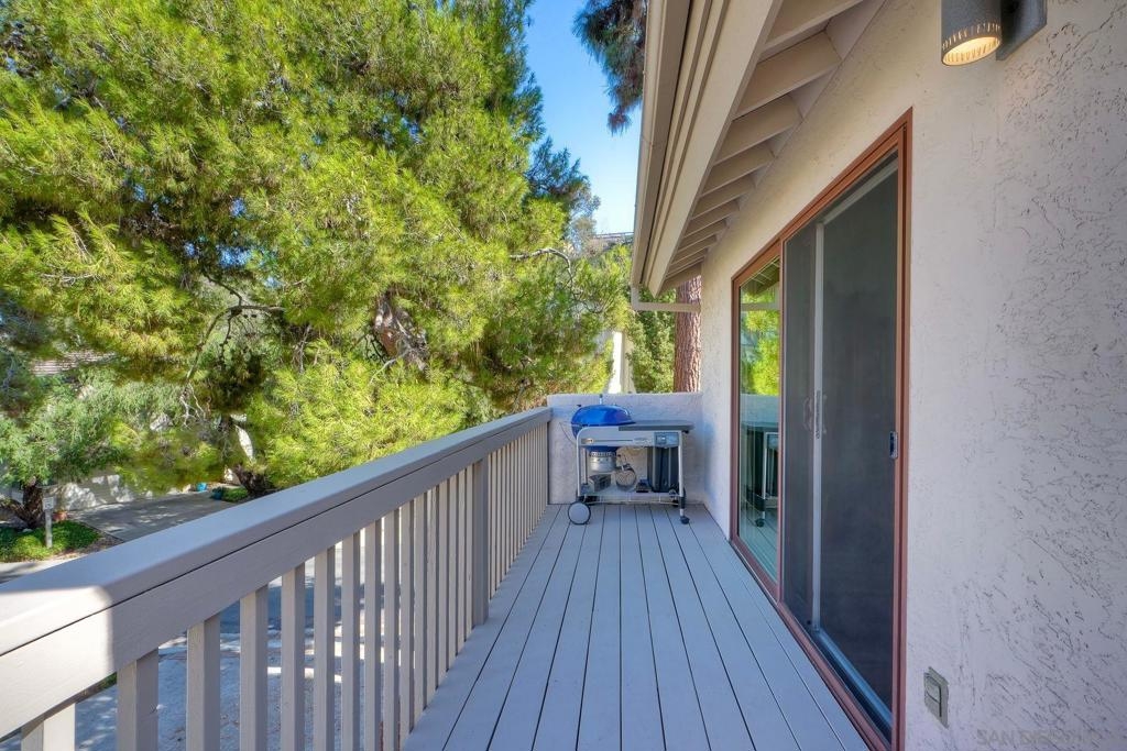 Fully Renovated Townhome in the Highly Desirable Kensington Park Villas Welcome to Kensington Park Villas, a serene, resort-style community tucked away in the heart of San Diego. This beautifully renovated 3-bedroom, 3-bathroom home spans approximately 1,875 sq. ft. and is one of the largest floor plans in the community. Thoughtfully upgraded from top to bottom, the home features a brand-new A/C system (installed in 2023), updated electrical throughout, a new water heater (2024), modernized bathrooms, and custom Elfa-built closets with interchangeable organizers. Perfectly positioned with no neighbors directly behind and scenic views of lush trees and a tranquil pond, this home combines privacy, style, and comfort in one stunning package. Step inside to a bright, open living space featuring tall, vaulted ceilings, modern finishes, and a newer fireplace that creates an inviting atmosphere. The gourmet kitchen is designed for both everyday living and entertaining, showcasing white and navy cabinetry, quartz countertops, sleek stainless-steel appliances, an induction cooktop, dual ovens, a warming drawer, and ample cabinet space with soft-closing features—including storage under the island. This home offers dual primary suites, one conveniently located on the lower level and one on the upper level. The downstairs primary suite features real bamboo wood floors, direct access to the private patio, and a luxurious ensuite bathroom with dual vanity sinks and a large walk-in shower. See Supplement => Upstairs, you’ll find the second primary suite, which was refreshed this year, along with an additional guest bedroom and full bath. Additional highlights include luxury vinyl plank flooring throughout, a balcony with serene views, and an attached 2-car garage with epoxy floors and built-in storage. Kensington Park Villas is truly a hidden oasis, offering a resort-like atmosphere with two swimming pools and spas, cascading waterfalls and ponds, beautiful mature landscaping, and pedestrian gates with direct access to the Village of Kensington. The gated community also features a clubhouse ideal for gatherings and events. Don’t miss this incredible opportunity to own a move-in ready, fully renovated home in one of San Diego’s most unique and desirable communities