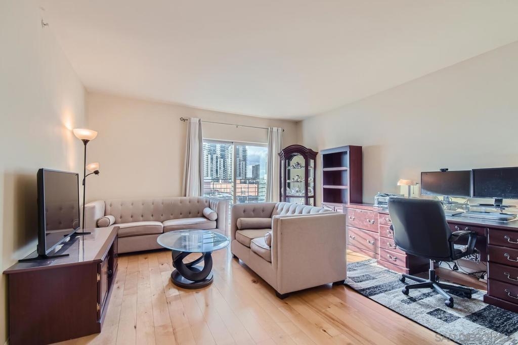 Downtown living at its finest! Live in the heart of the famous Gaslamp Quarter. This unit has 799 sqft of open living space and faces the quiet courtyard while overlooking most buildings. Its incredible views allow a great deal of natural light. This unit also includes; hardwood floors, spacious walk in closet, upgraded appliances, washer/dryer and is move in ready! Amenities include: pool, BBQ area, gym, jacuzzi and underground covered parking. Walking distance to restaurants, the marina, shops and everything Downtown has to offer. FHA/VA Approved. Schedule your tour today!