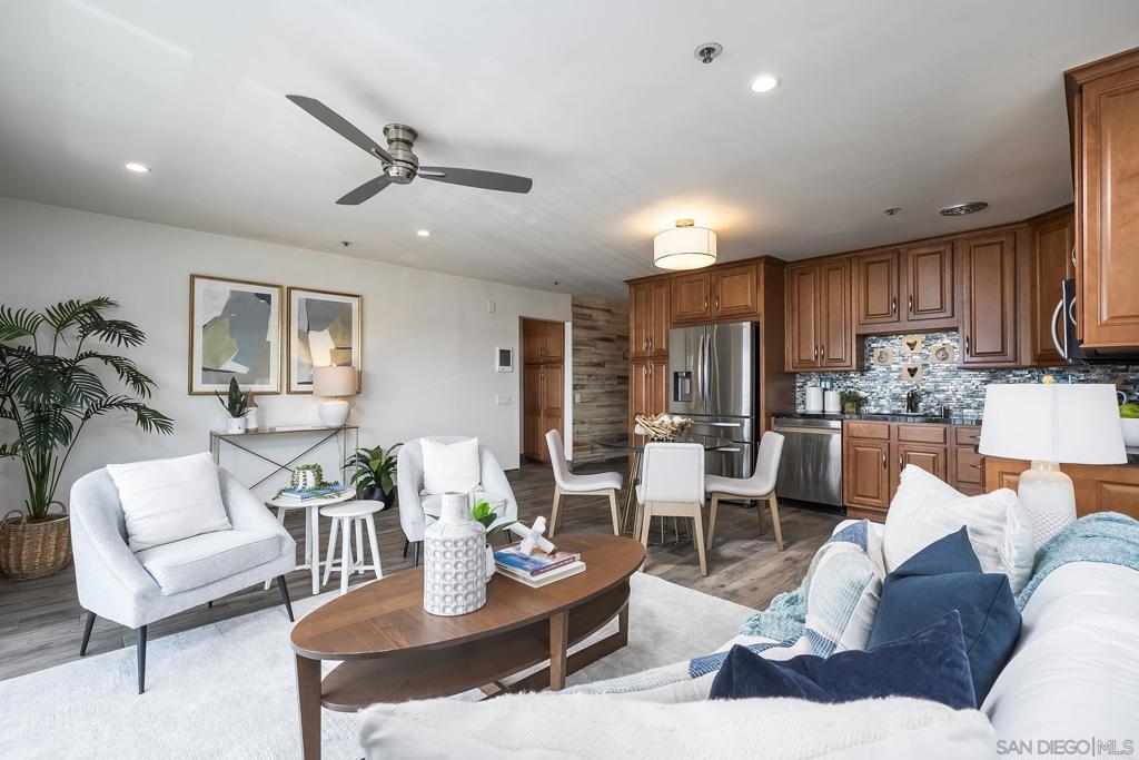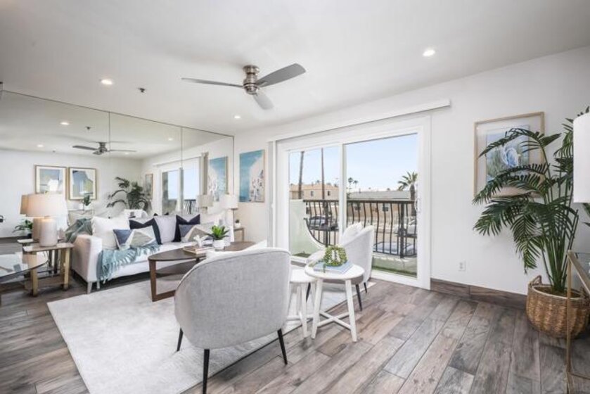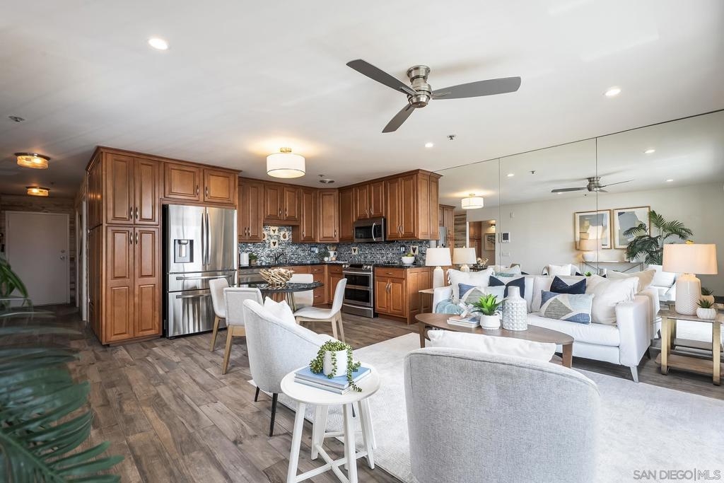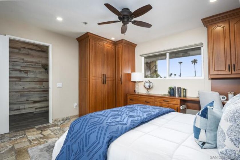 Welcome to coastal living at its finest in this beautifully maintained 2-bedroom, 2-bathroom condo offering approximately 1,078 square feet, ideally located along the waterfront in Ocean Beach. Enjoy sweeping ocean views and refreshing sea breezes from your private balconies—perfect for morning coffee or relaxing at sunset. Inside, a bright and inviting open-concept layout showcases a beautifully updated kitchen with rich wood cabinetry, stainless steel appliances, and a stylish tile backsplash. The kitchen flows seamlessly into the dining and living areas, creating an ideal space for both everyday living and entertaining. A wall of mirrors enhances natural light and amplifies the sense of space, while modern lighting, ceiling fans, and warm-toned flooring complete the cohesive, move-in-ready design. The spacious primary suite offers a tranquil retreat with generous proportions, mirrored closet doors, and direct balcony access, along with a well-appointed en-suite bathroom featuring dual vanities, ample storage, and updated finishes. The versatile second bedroom features custom built-ins, a Murphy bed, and an updated en-suite bathroom, making it ideal for guests, a home office, or both. Additional highlights include abundant storage throughout, in-unit combo washer/dryer, and a secure building for added peace of mind. Located just steps from the sand and surf, and moments from the shops, dining, and vibrant energy of Newport Avenue, this home offers the ultimate blend of comfort, convenience, and coastal charm!
