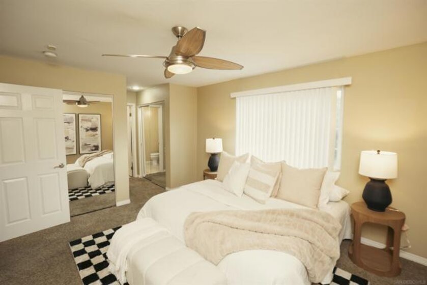 Looking for your next investment or a great starter home? This 2 bed/2 bath condo conveniently located within walking distance to SDSU & easy freeway access, could be the place for you! Move-in ready with all you need, including assigned gated parking and in-unit washer/dryer. Enjoy a nice open floorplan and spacious bedrooms. Bedrooms on are on opposit sides, with great closet space and the primary bedroom has a walk-in closet. On nicer days there is a Juliette balcony with French doors for a breeze or cool off in the community pool and spa.