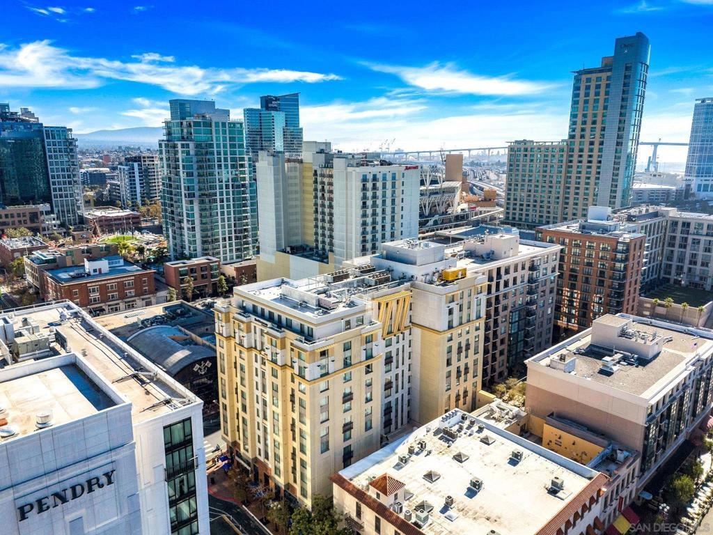 Beautifully remodeled studio in the heart of the historic Gaslamp Quarter — perfect for professionals or anyone seeking a vibrant urban lifestyle. This courtyard-facing unit offers peace and privacy while still being steps from all the action. Interior features include an open layout with breakfast bar, designer fixtures, upgraded flooring, and convenient in-unit laundry. Enjoy your own private balcony, plus access to a well-maintained, gated community with secured underground parking, fitness center, BBQ area, and lush courtyard. Live just blocks from Petco Park, the Convention Center, top restaurants, nightlife, and Seaport Village — all with a warm, modern “home” feel that’s rare in downtown living.