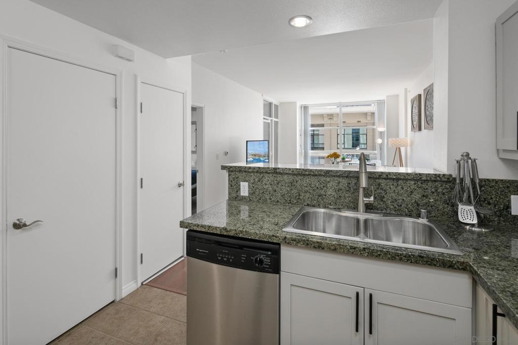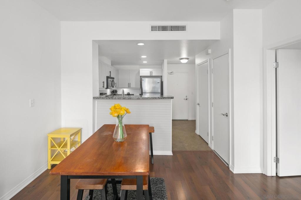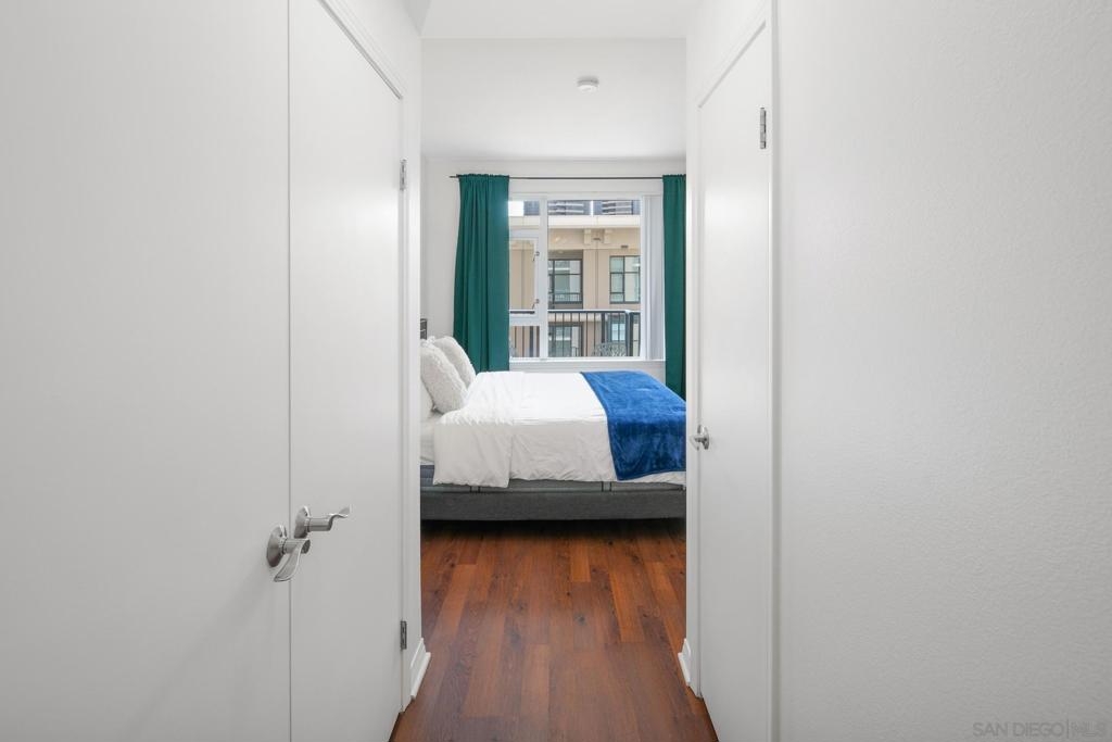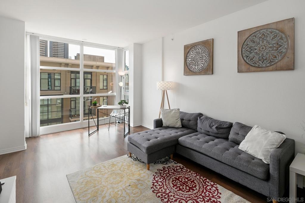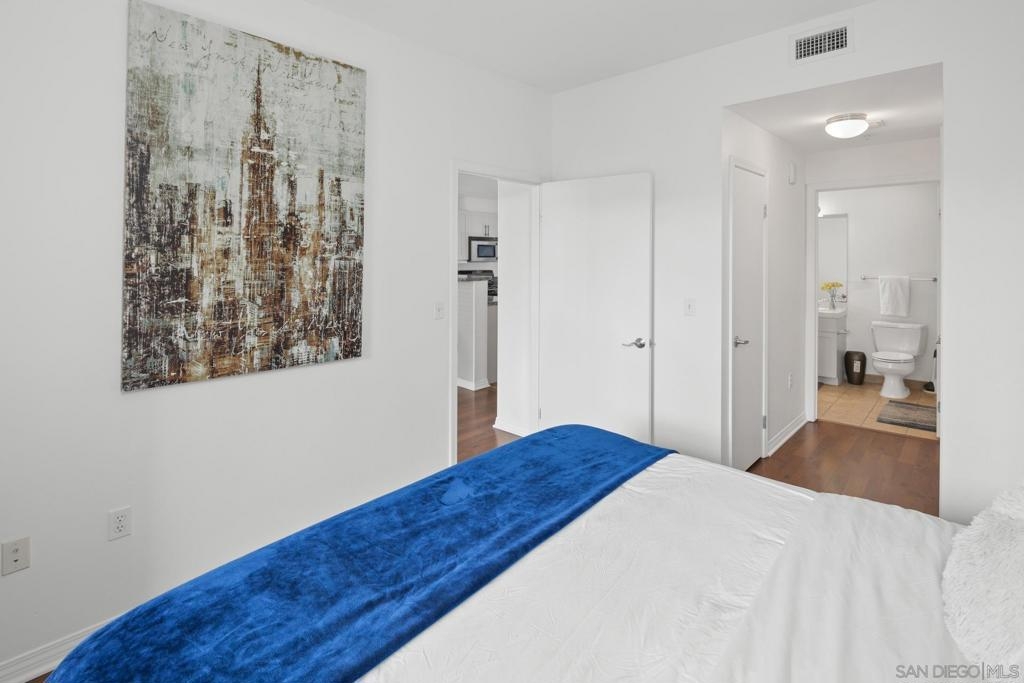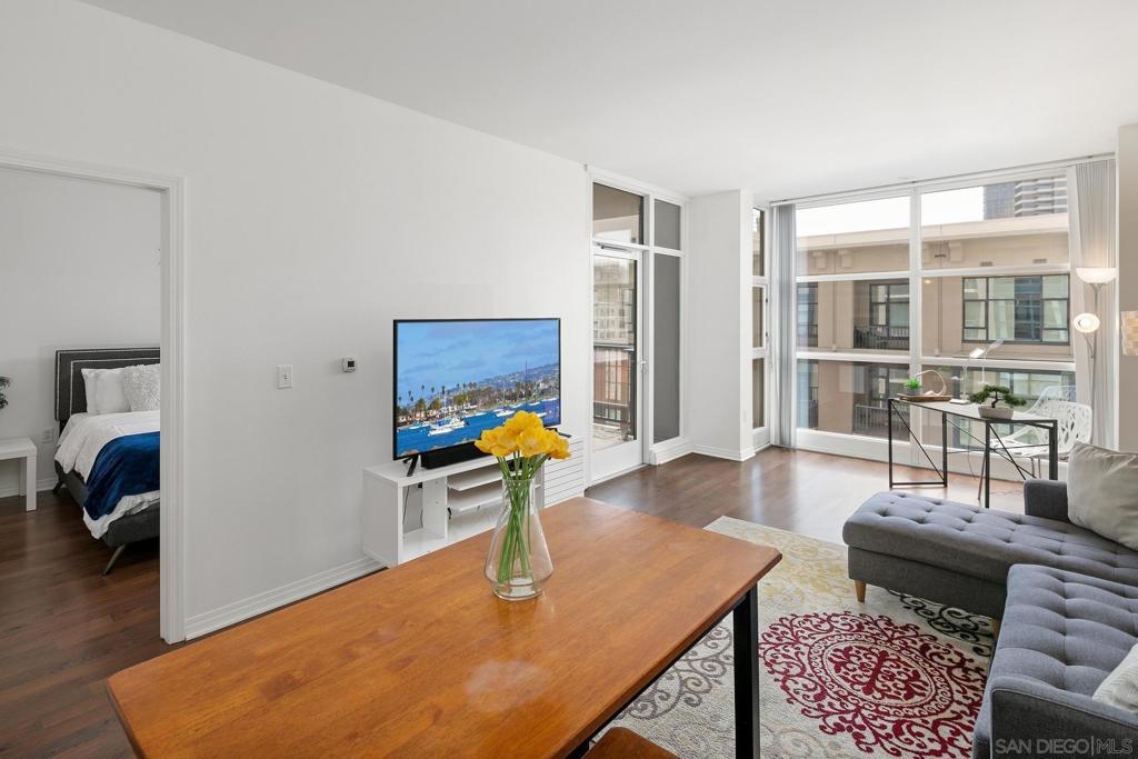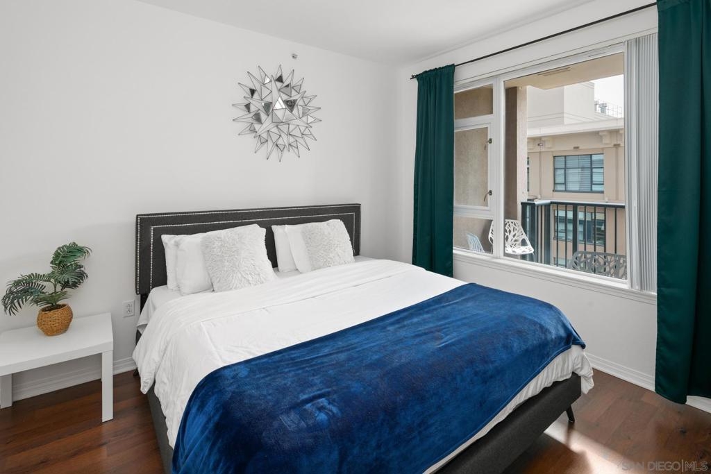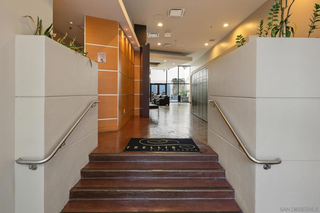 Investment opportunity for a fully furnished 1 bed 1 bath condo in the Trellis Building. Located in the Gaslamp Quarter, this contemporary condo offers a luxurious urban lifestyle with a west-facing orientation overlooking a serene courtyard. The floor-to-ceiling windows flood the space with natural light, creating an inviting ambiance. The floor plan is well laid out and functional. This newly renovated condo features an ample sized bedroom with a king-size bed, duel master bedroom closets, and a “jack and Jill” bathroom entry. Trellis is in the heart of the Gaslamp near popular restaurants, bars, and entertainment spots, as well as the San Diego Convention Center, Petco Park, and the Waterfront Embarcadero. Complex amenities include secure underground parking with one assigned space, fitness center, outdoor entertaining area with BBQs and community room.