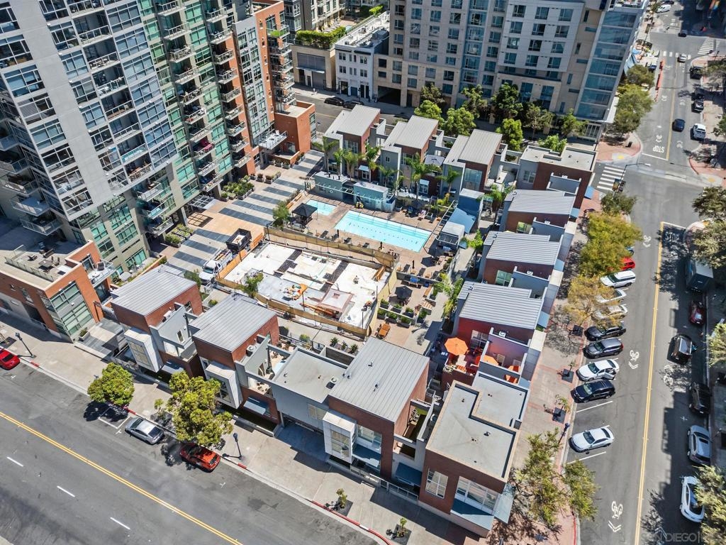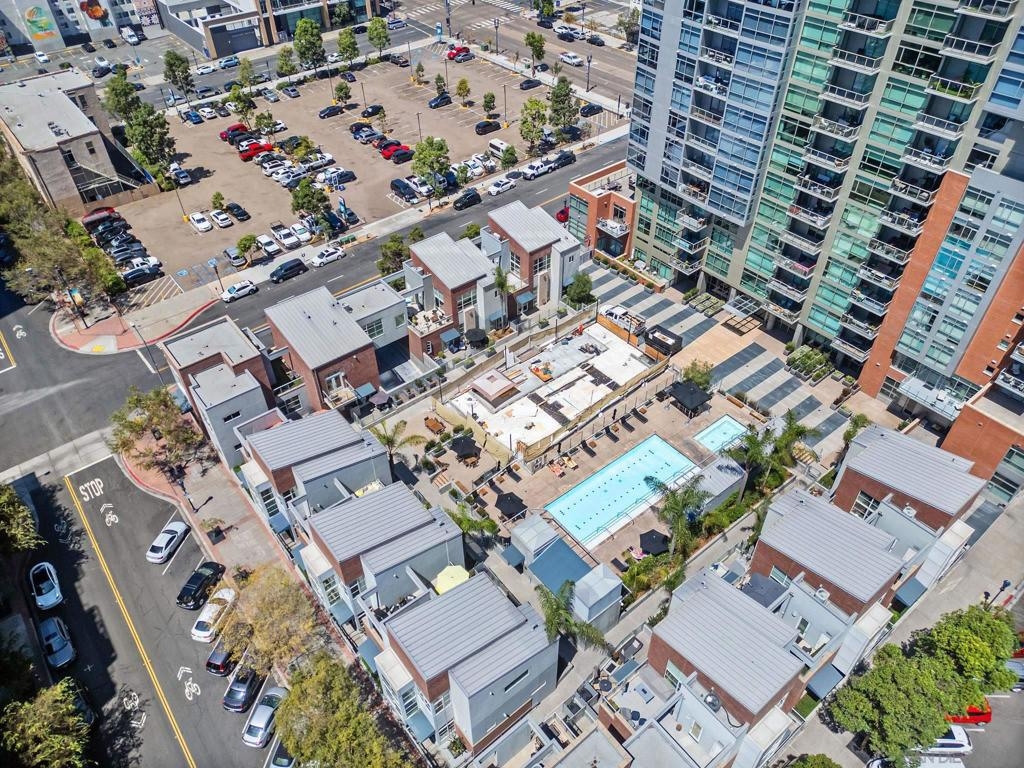 SELLER WILL ENTERTAIN SALE OR A 6 TO 12 MONTH LEASE. xperience the perfect blend of urban convenience and private living in this exceptional walk-up townhome, nestled in the heart of East Village, Downtown San Diego. This residence offers the security and amenities of a gated high-rise community, including concierge services, while providing the comfort and privacy of a detached home. Enter through your own private street entrance or the serene back patio. Inside, the spacious townhome features vaulted ceilings and an abundance of natural light streaming through numerous windows. The front entry leads to an open-concept living area, complete with a cozy fireplace and French doors that open to the private patio—ideal for indoor-outdoor living. Additional amenities include two side-by-side parking spaces and a large storage room. Don't miss this opportunity to enjoy luxury living with the feel of a detached home in the vibrant East Village neighborhood. The Mark: Luxury Living in Downtown San Diego The Mark is a stunning 33-story residential high-rise located in the heart of the East Village neighborhood of downtown San Diego. Surrounded by five-star restaurants, sidewalk cafés, music venues, theaters, shopping, and sporting events, The Mark offers the perfect blend of urban convenience and luxury living. The bay is just minutes away, enhancing the lifestyle experience. The building’s exterior is an architectural masterpiece with sleek glass and metal paneling, complemented by 11 unique brick townhomes. Residents enjoy exclusive access to a private driveway and a beautifully designed outdoor space, which includes: • A lap pool and spa • Fully furnished patio with an outdoor kitchen, fire pits, and pizza oven • Multiple seating areas and four barbecue stations • Outdoor showers and restrooms Additional amenities include a modern fitness center and a conference room with Wi-Fi access. Spacious Interiors and Convenient Features. The Mark boasts wide hallways, a well-lit garage with two side-by-side parking spaces, and a large storage room conveniently located near the parking area. The building also offers a private loading dock and a service elevator capable of accommodating large pieces of furniture. All these luxury amenities come with surprisingly low HOA fees, making The Mark an exceptional choice for downtown living.