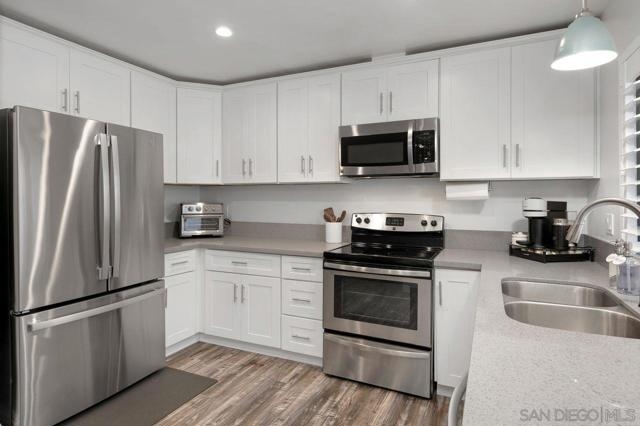 An opportunity to own a rare 4BD/2.5BA, 1,386 sqft townhouse ideally located in Clairemont. Beautifully remodeled several years ago, this home has been further enhanced by the current owners with a new HVAC system, plantation shutters, blackout curtains in the primary suite, and recessed lighting in the kitchen. Enjoy the private courtyard between the kitchen and spacious 2-car garage, perfect for entertaining or relaxing evenings. The community offers a pool, spa, and lush greenbelt throughout... see supplement. Conveniently situated near freeways, restaurants, and shopping for easy access to everything San Diego offers.