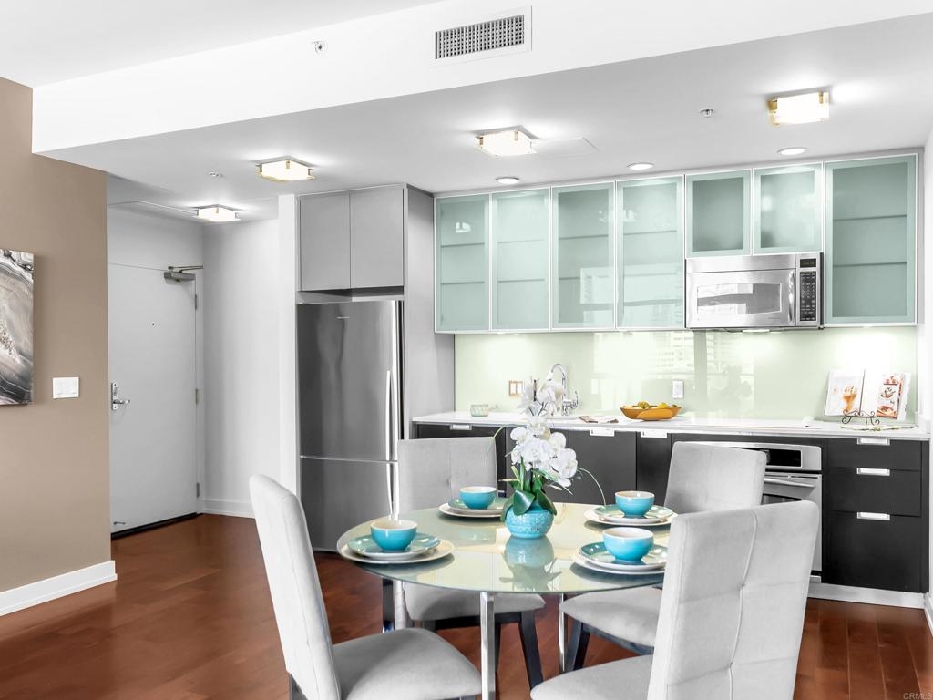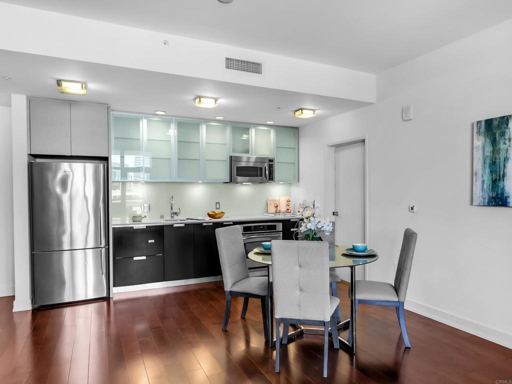 SELLERS SUPER MOTIVATED. Unbelieveable pricing for this beautiful Downtown luxury living. A HOLIDAY SPECIAL SO MUST HURRY... LIFETIME FREE PARKING with Endless Views on 10th Floor in exclusive Alta Community, just 2 blocks from Petco Park, vibrant Gaslamp Quarter, East Village, Little Italy, Convention Center, and an array of over 100 exceptional restaurants. This location offers unparalleled convenience, security and amenities and one of the lowest HOA communities downtown. This elegant condo boasts upscale finishes throughout, featuring hardwood floors and a modern European style cabinets and glass doors, SS appliances and the open dining layout is perfect for entertaining, while the spacious private balcony invites you to enjoy al fresco dining. The bright bedroom includes ample storage, privacy w/ dual window coverings and a walk-in closet. Additional highlights include floor-to-ceiling dual-pane insulated windows, an in-unit washer and dryer, a smart storage closet (P1), a staffed lobby, an on-site manager, a secure parking spot, and controlled access entry. There are also 5 Guest parking spots. Residents can indulge in the resort-like roof top pool and spa, a state-of-the-art fitness center, and a recreational room ideal for fun and meetings from home or hosting gatherings. This community welcomes pets and features top of the line amenities. DON'T WAIT- OR YOU WILL MISS this opportunity to ENJOY THE AMAZING DOWNTOWN living experience!