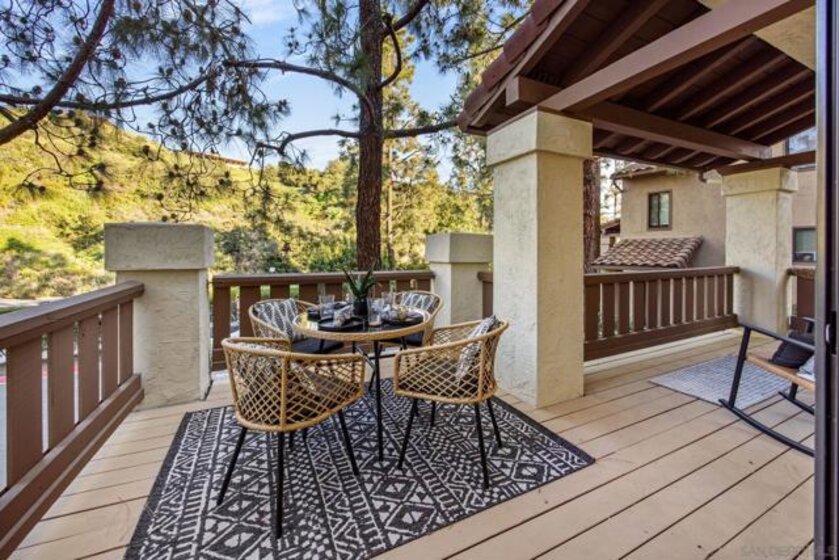Welcome to 5970 Mission Center Road in the desirable Hye Park community — a thoughtfully updated end unit townhome offering one of the most functional layouts in the complex and a rare list of upgrades you won’t find in other available units. Only two units in the building this townhome lives like a home. One of the most important improvements? The entire home has been fully repiped with copper plumbing, eliminating the original polybutylene plumbing still found in many neighboring units — a major upgrade that offers peace of mind and long-term value. The plumbing comes with a 15 year warranty transferable to the new buyer. The home features a bright, open main level designed for easy indoor-outdoor living. The kitchen flows seamlessly into the living and dining spaces and opens to an oversized, covered and uncovered private deck — a standout feature in the community. Unlike many units, this deck is fully private and not shared, creating the perfect space for entertaining, relaxing, or dining outside year-round. Upstairs you'll find two spacious bedrooms, each with an en-suite bathroom, and large enough to comfortably incorporate a home office or flex workspace. The smart layout keeps living areas separate from sleeping quarters while maximizing usable space throughout the home. The real hardwood floors throughout give an elevated feel. Additional highlights include an attached two-car garage with a large extra storage area, plus plentiful guest parking nearby, making hosting friends and family easy. Ideally positioned within the community, the home enjoys a convenient location with less units and more available guest parking. Residents of Hye Park enjoy access to amenities including a pool and spa, with HOA dues covering water, pool, and common area maintenance. Families will also appreciate that the home is located within the boundaries for highly rated Nipaquay Elementary School, the area’s newest school. Perhaps the best part of the location is the proximity to Civita — just a short walk away from its parks, restaurants, coffee shops, and community events — allowing you to enjoy everything Civita has to offer without the Civita price tag or congestion. A rare combination of upgrades, privacy, layout, and location makes this home stand out among the others currently available in the community.