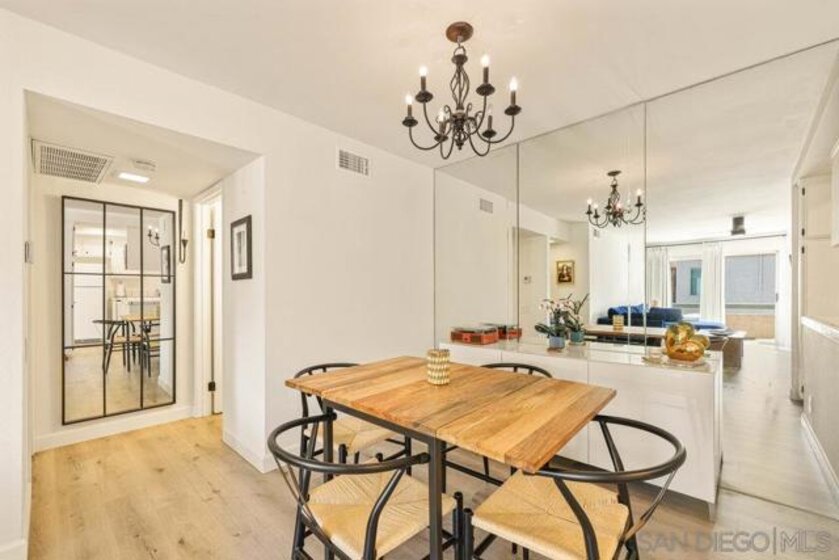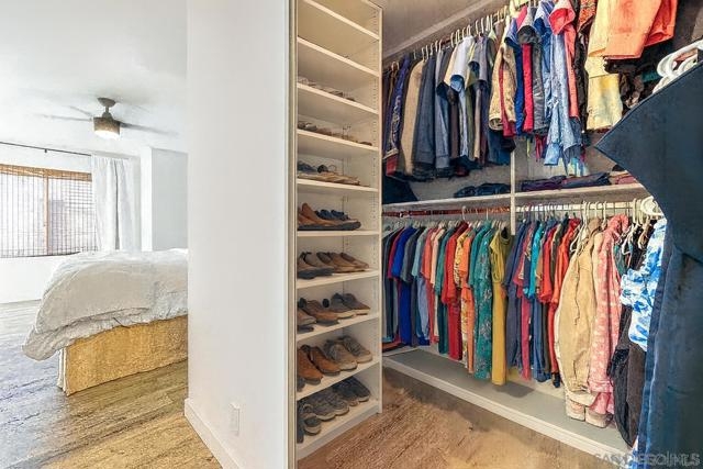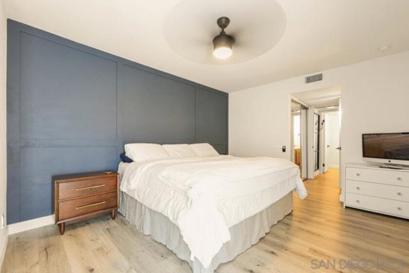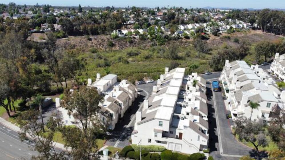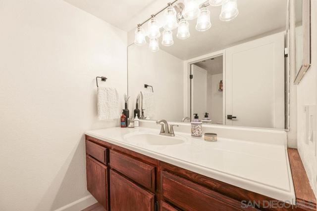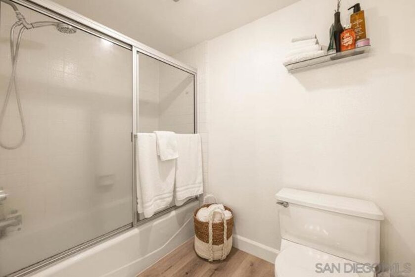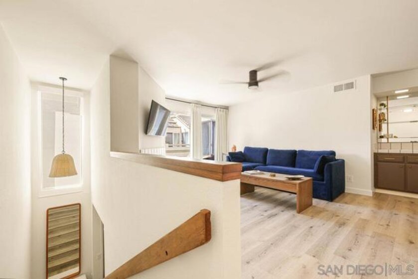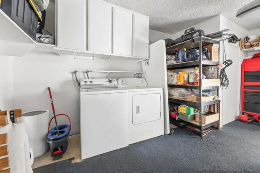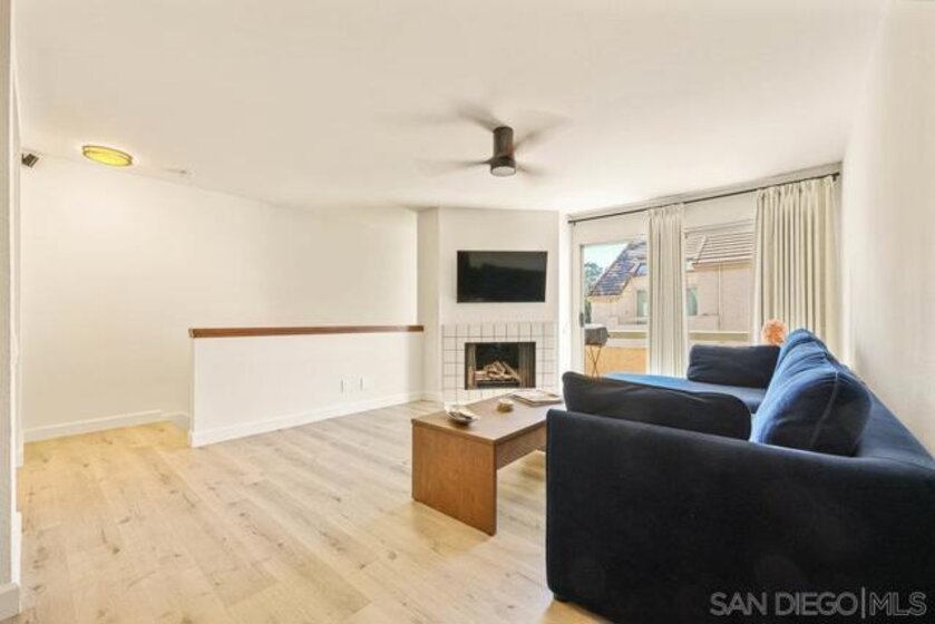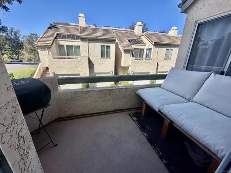 BOM, No fault of seller. Surrounded by scenic canyons and trails, this move-in-ready condo in Villa Colina, Tierrasanta, offers the perfect balance of nature and convenience. Inside, the spacious open-concept layout features a fireplace, stylish vinyl plank flooring, neutral interior paint, and a ceiling fan for year-round comfort. A remote-controlled blind on the high entryway window and blackout drapes in the living room provide both privacy and light control. Step out to a private balcony with storage, ideal for morning coffee or sunsets. The bedroom features its own ceiling fan for added comfort, blackout drapes, and a custom walk-in closet with built-in storage, providing organized space. The bathroom features a modern light fixture, a newer sink faucet, a newer toilet, and a convenient shower/bath combo. A rare oversized two-car side-by-side garage features an epoxy floor, washer/dryer, storage galore, and space for a home gym, work/hobby bench, all with direct interior access. Enjoy access to nearby Shepherd Canyon trails, sparkling community pools, breathtaking sunset views, and the tranquility of nature, all within minutes of shopping, dining, and freeway access. **