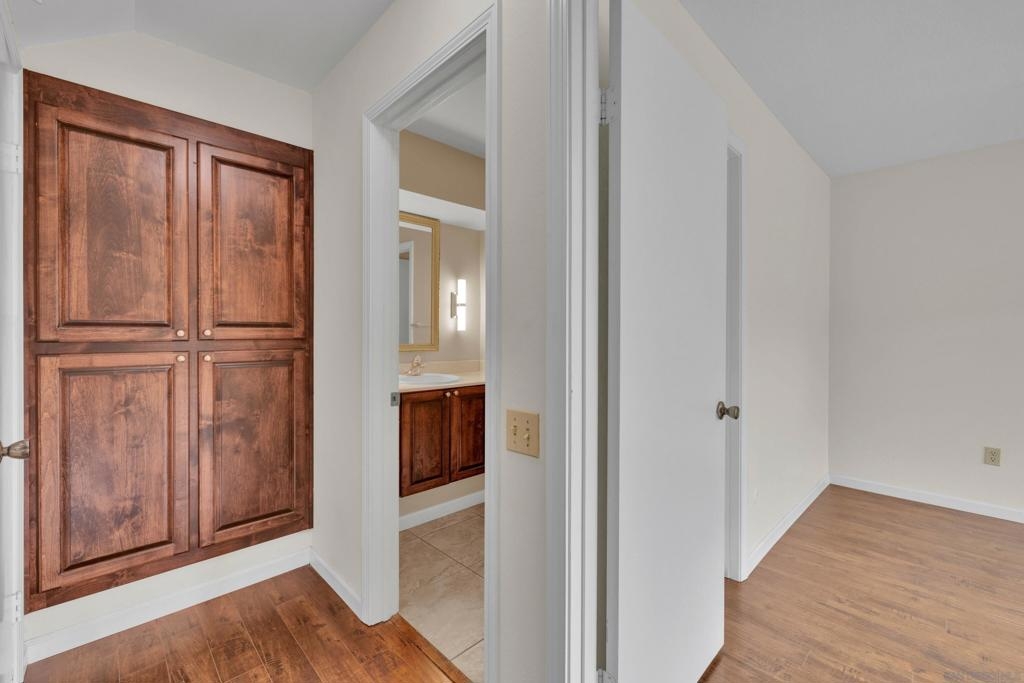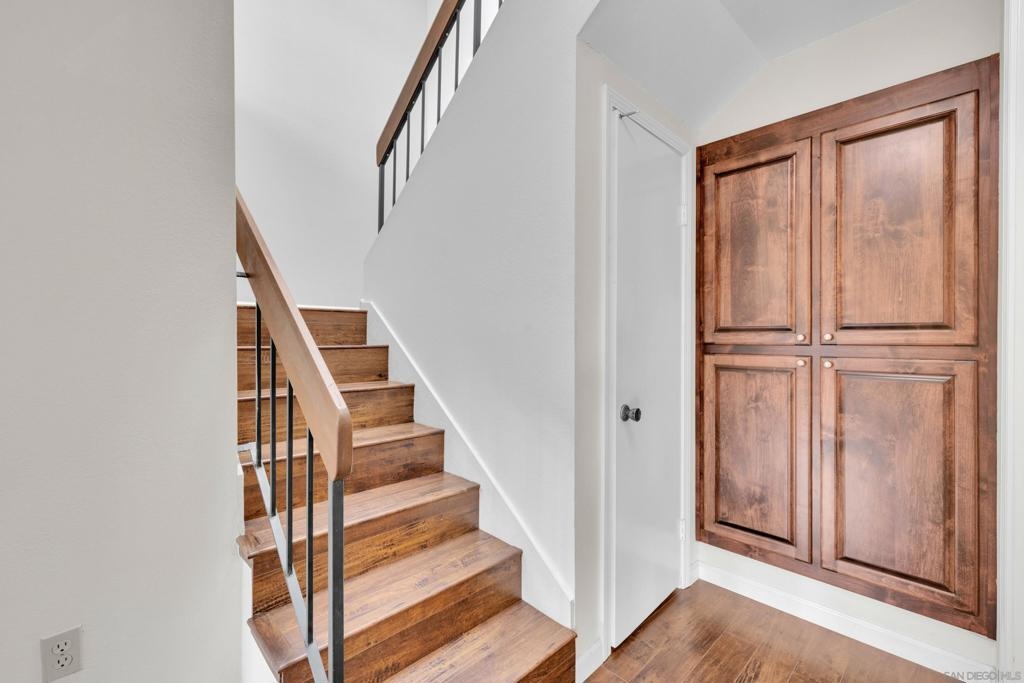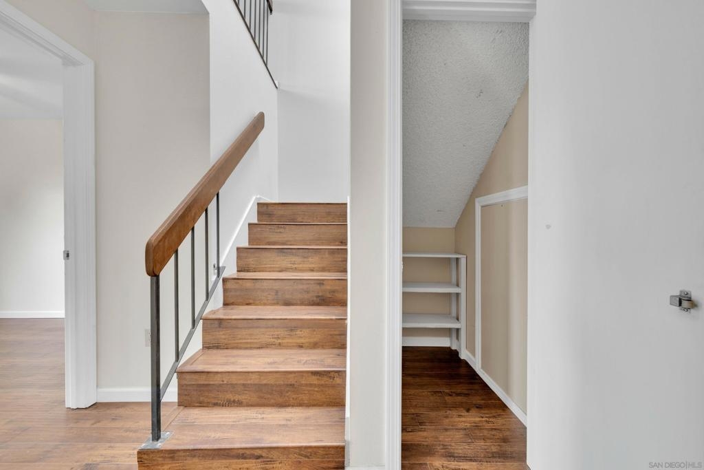 Beautifully remodeled & laid out townhome in highly desirable Friars Village! Dual pane windows, granite countertops, new kitchen cabinets, distressed flooring, stainless steel appliances, washer/dryer, new shower and so much more! USD across the street, bus line close, trolly station close by, shops, malls. Easy freeway access.