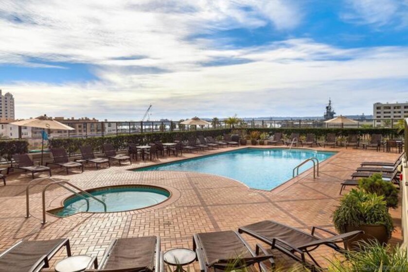 Beautiful and rarely available southwest corner residence in the iconic Electra Building, offering 2 bedrooms, plus 1 optional flex-use room (ideal as a 3rd bedroom or office) and 2 baths with breathtaking bay and city views—finally, your opportunity to have the ultimate corner office at home. This remodeled, light-filled home showcases expansive windows framing sweeping views from every room, along with a private west-facing terrace ideal for sunset vistas and dazzling firework displays. A cozy fireplace framed by elegant built-ins creates a warm yet refined living space. The kitchen is well-appointed with bar seating, quartz countertops, custom tile backsplash, and a built-in microwave. The spacious primary suite offers dual closets, including a walk-in, along with an updated luxurious bath featuring dual sinks, a walk-in shower, and separate soaking tub. A full-size stacked washer and dryer add everyday convenience. Additional highlights include an assigned oversized parking space—capable of accommodating two small vehicles—with an EV charger and dedicated storage, both located on the third floor. Residents enjoy access to the beautifully restored historic conservatory with soaring cathedral ceilings, along with resort-style amenities including 24-hour concierge, pool, spa, sauna, steam room, completely remodeled TechnoGym fitness center, and outdoor BBQ and dining areas. Don’t miss this rare opportunity—perfect for those seeking elevated urban luxury in Downtown San Diego. Ideally located in the heart of Downtown, you are surrounded by all that makes living in San Diego great - Petco Park, bustling cafes, bars, boutiques, Balboa Park, the waterfront, Coronado Island, Little Italy, Gaslamp District and so much more!