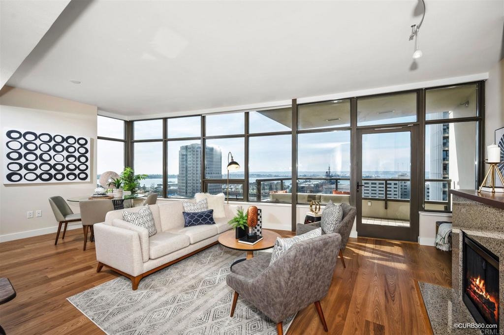 This beautiful 11th floor 2 Bedroom, 2 Bath plus Office corner condo boasts spectacular views from every room in this desirable luxury tower which is Electra. Expansive windows along with top-of-the-line appliances, hardwood floors and granite counters in the open kitchen with views to the west. Located in the Columbia District and one block from the exciting waterfront. Just steps from the excitement of the Embarcadaro, Gaslamp, Petco Park, shopping and entertainment. Amenities Include: The beautiful Conservatory, 4 Elevators, kitchen facilities & fireplace, Spacious Landscaped Gardens, Closed circuit cameras providing 24-Hour security, Gated underground parking for residents, individual storage , Bicycle storage, Professional Property Management, Facility Director & Maintenances staff, outdoor Swimming Pool, Whirlpool Spa, Sauna & Steam Rooms, roaming attendant, Buyer to verify all prior to close of escrow.